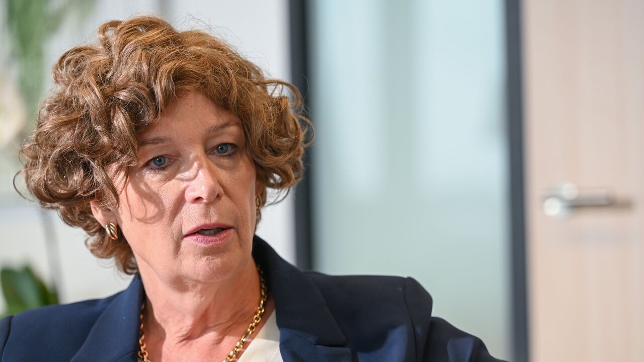 Op foto (vlnr): Vlaams minister van Brussel en Media Cieltje Van Achter, voorzitter van de Raad van Bestuur van VRT Frieda Brepoels, gedelegeerd bestuurder van VRT Frederik Delaplace.