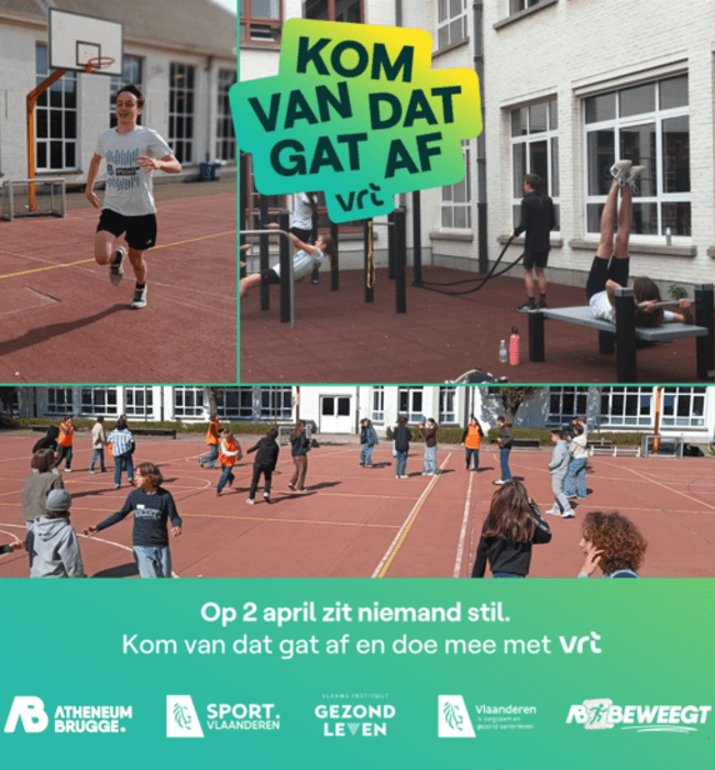 Beste VRT, Ik deel hieronder mijn verstuurd bericht naar de leerlingen, collega's, ouders. Beste leerlingen, ouders, collega's Stilzitten verboden! Doe op donderdag 2 april mee met je vrienden, collega’s of klasgenoten en beweeg samen met duizenden Vlamingen. Welke acties willen wij ondernemen op school / moedigen we aan...Kom op donderdag 2/04 met de fiets, al wandelend of lopend naar school. 7000 stappen per dag.. biedt al veel gezondheidsvoordelen!Wie wil lopen naar school.. er is de mogelijkheid om te douchen op school (verwittig de leerkracht LO). De middagpauze wordt een wandelpauze Wandel en babbel rond de speelplaats Wie verzamelt er de meeste wandelmeters? (1 ronde = 200 meter, voor alle duidelijkheid = geen loopwedstrijd). Leerlingen van 3SPWE turven jullie rondes. Aanmelden doe je ter hoogte van de ingang van de sportzaal om 13u20.Over de middag... organiseren we een recreatief tafeltennistornooi Wie kroont zich tot de keizer of koninging van het tafeltennissen?Inschrijven doe je via: Tafeltenniscup - Donderdag 02/03 - Kom van dat Gat af! - Formulier invullenHoe willen we jullie allen motiveren om op donderdag 2/04 te bewegen? Plan een beweegactiviteit met vrienden op 02/04 Ga boulderen, fitnessen, lopen,... alles behalve 'gatzitten' ;)Draag tijdens deze activiteit je LO-shirt en maak kans op een leuke (sportieve) prijs!Uploaden foto: Draag je LO-shirt tijdens een sportactiviteit naschools en win een sportieve prijs! - Formulier invullen (inloggen met schoolaccount om bestand te kunnen uploaden, bij problemen stuur een smart). Plan op 02/04 een wandeling, fietstocht, looptraining na school of werk met de ouders. Trek er op uit! (Foto's van de gezinsactiviteit zijn welkom). Met sportshirt van school.. dan maak je kans op een leuke (sportieve) prijs! Mvg De vakgroep lichamelijke opvoeding