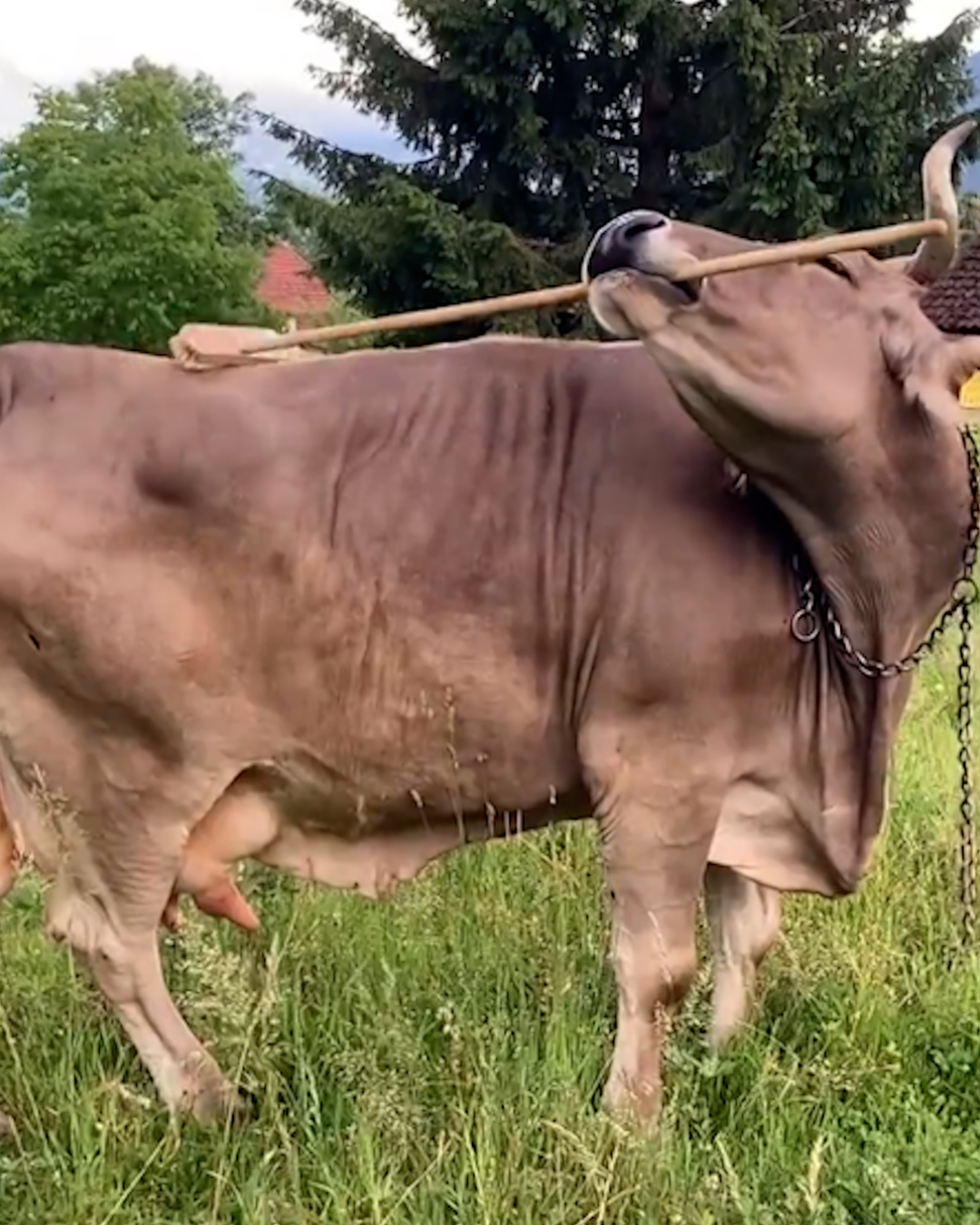 'Geniale' koe Veronika gaat viraal omdat ze zichzelf krabt met borstel: "Uniek gedrag"