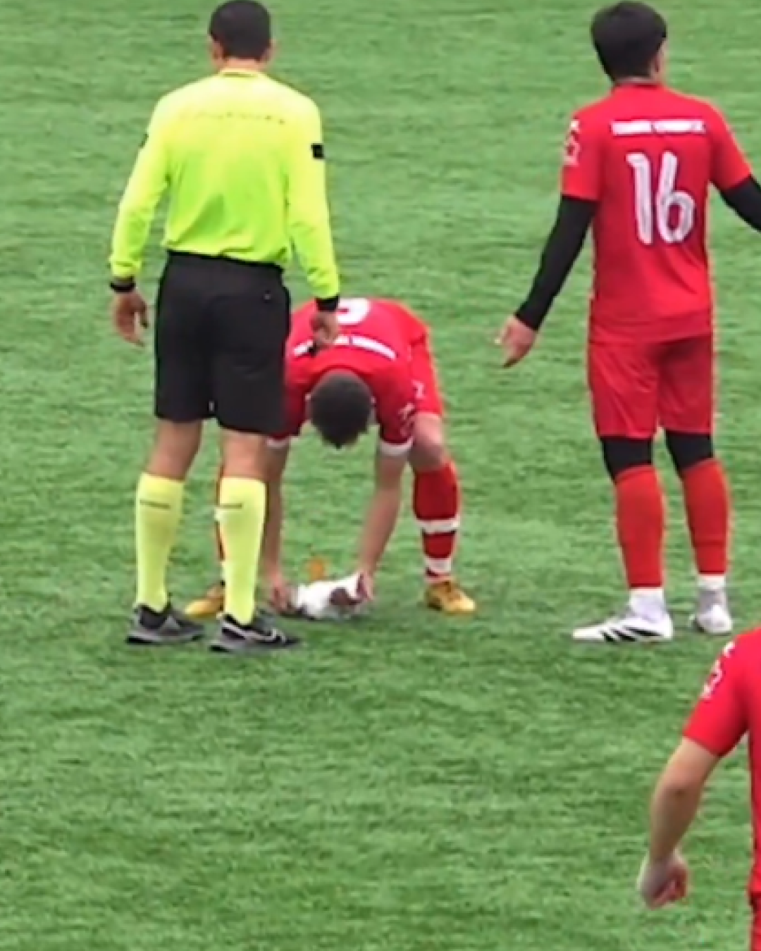 Turkse keeper raakt meeuw met bal, speler redt de vogel door reanimatie