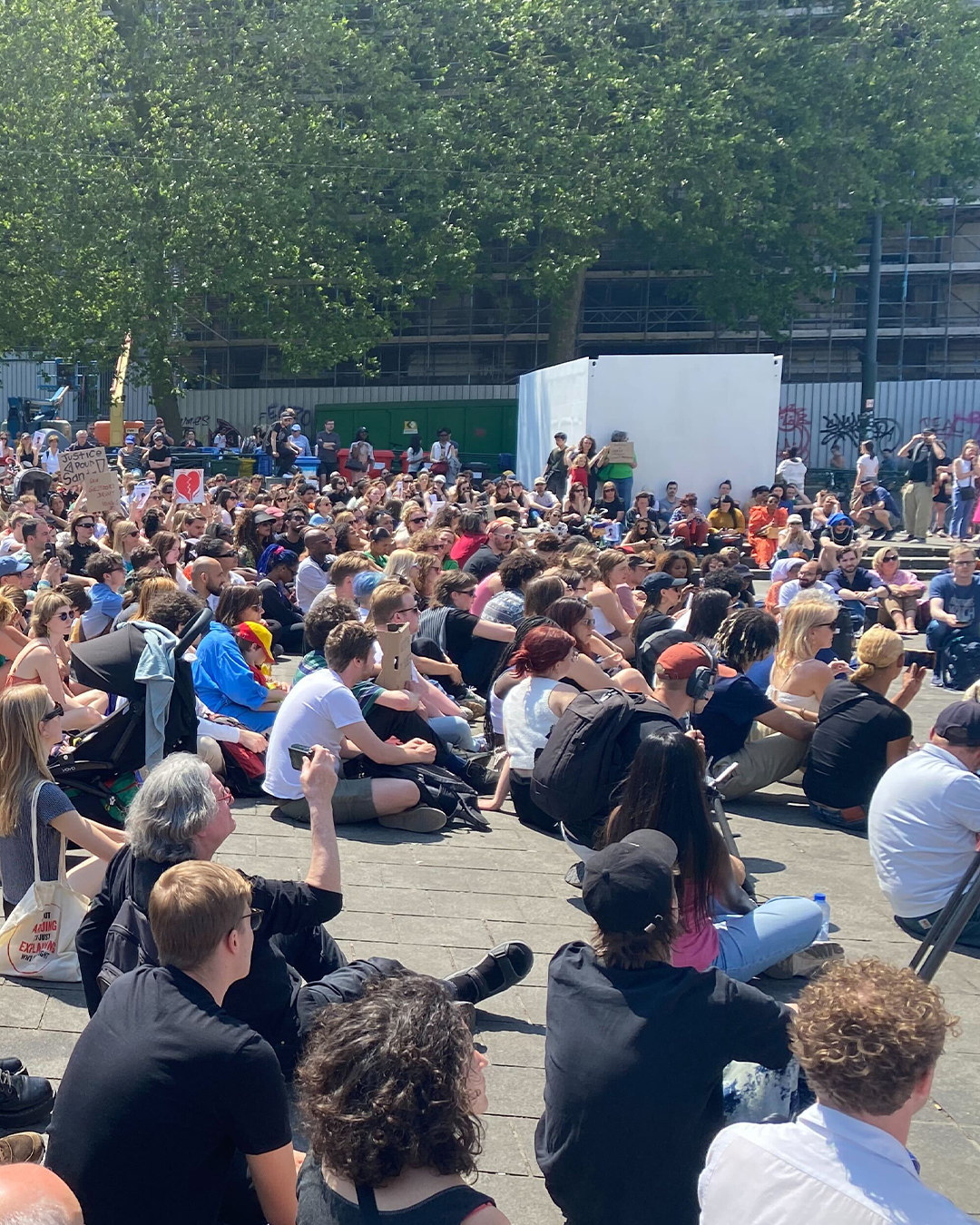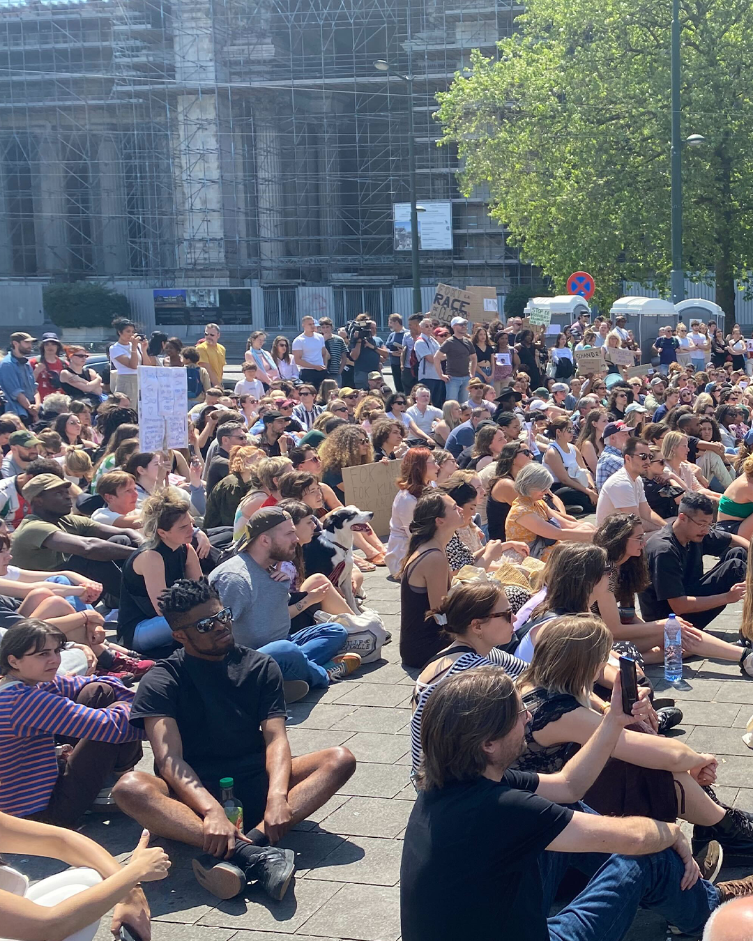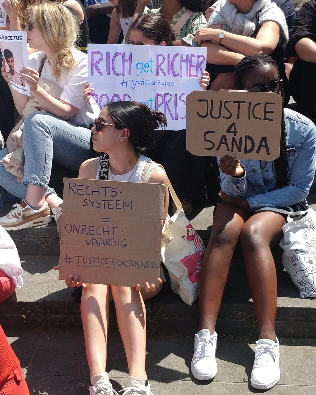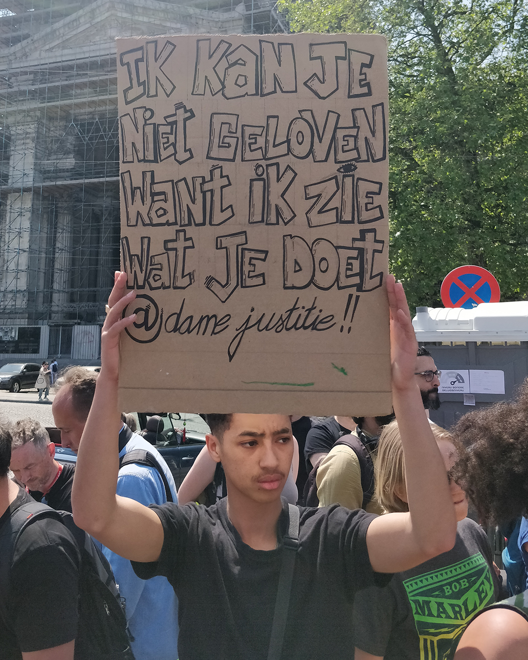 In Brussel zijn vandaag zo'n 300 mensen samengekomen voor het justitiepaleis. Ze protesteerden tegen de uitspraak in de zaak-Sanda Dia. Daarbij werden vorige week 18 leden van studentenclub Reuzegom veroordeeld voor de dood van Sanda Dia na een doop in 2018. De Reuzegommers kregen allemaal werkstraffen en boetes, maar dat vinden de betogers niet genoeg. Op beelden zijn vooral bordjes te zien met slogans zoals "No more silence", "Justice for Sanda" en teleurgestelde boodschappen tegen justitie. Youtuber Acid was ook aanwezig bij de actie. In andere steden komen vandaag nog heel wat mensen op straat tegen de uitspraak. Dat is onder andere zo in Gent en Brugge. Eerder deze week en vorige week waren er al manifestaties in Antwerpen, Leuven en Brussel.