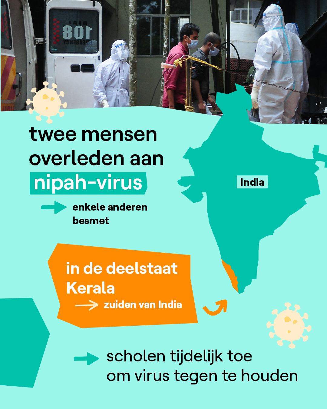 In België komt het nipah-virus helemaal niet voor. Volgens viroloog Steven Van Gucht is er geen enkele aanwijzing dat het virus onderweg is naar hier, of dat er een pandemie zou kunnen ontstaan. Het nipah-virus komt vooral voor in het zuiden en zuidoosten van Azië zoals India, Bangladesh of Maleisië. Sinds 2001 zijn er in Bangladesh bijna elk jaar gevallen van nipah. In India is er nu voor de vierde keer een uitbraak sinds 2018.