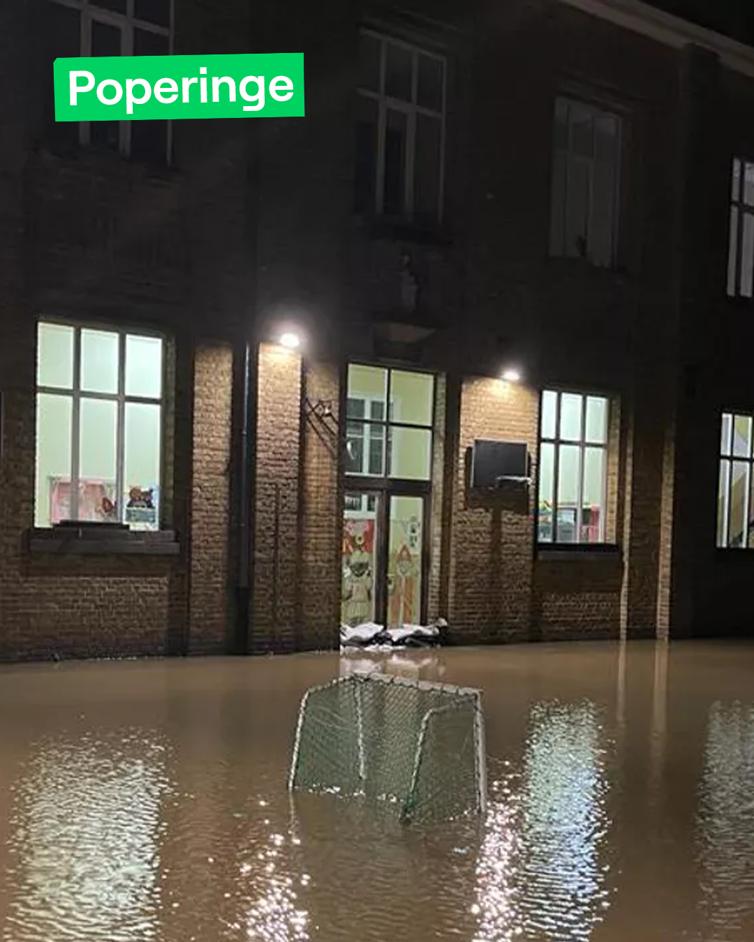 Een vrouw in Watou (in de Westhoek dicht bij Frankrijk) schept water uit de gang van een huis. Door de felle regen was daar de afgelopen dagen al wateroverlast, maar vanavond is het nog erger. Door de regen van vandaag is er in ook in andere provincies wateroverlast in straten, scholen, stations, huizen... maar vooral in de provincie West- en Oost-Vlaanderen is er dus veel risico. Zo is er op dit moment kans op overstromingen rond Diksmuide. En aan het sluizencomplex in Nieuwpoort zijn extra pompen geplaatst om het water naar de zee te stuwen.