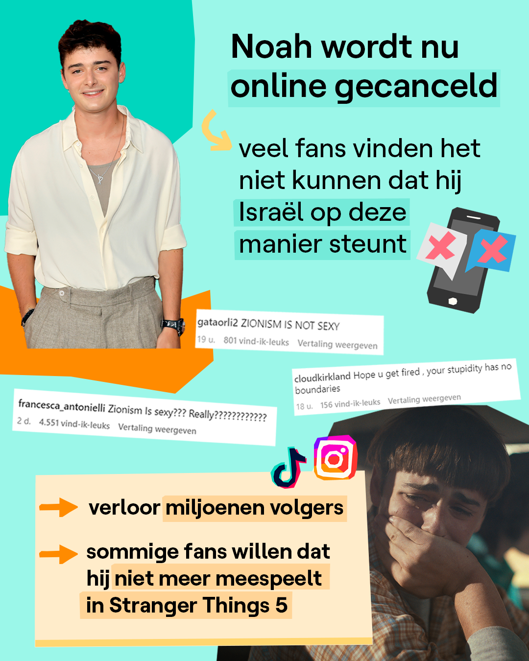 Fans willen Noah Schnapp uit Stranger Things 5 na "Zionisme is sexy"-stickers: wat is er juist gebeurd?