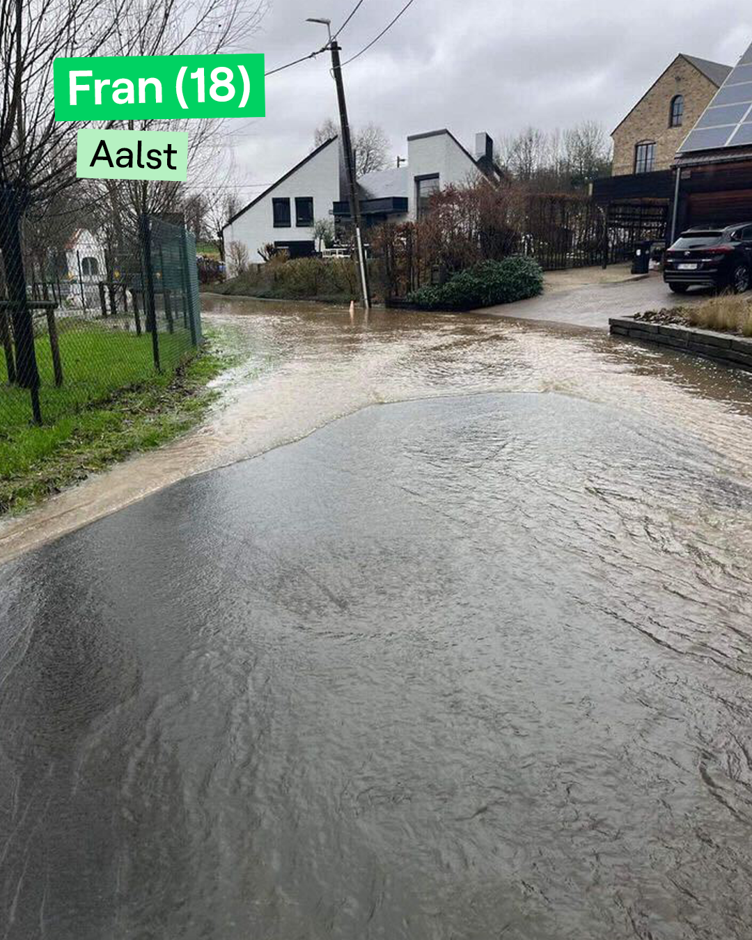 Lente (16) uit Dendermonde en haar vrienden beginnen dit jaar niet met een slee in de sneeuw, maar wel met ... een zwemband in een ondergelopen straat. Vooral Oost-Vlaanderen en Vlaams-Brabant zijn het zwaarst getroffen door de regen. Heb je storm- of waterschade en heb je de brandweer nodig? Dan kan je bellen naar 1722 of via http://www.1722.be een aanvraag indienen. Voor levensbedreigende situaties bel je het numer 112.