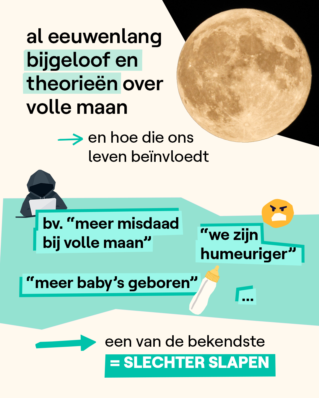 Vannacht is de allereerste volle maan van het jaar. Velen geloven dat je daardoor slecht slaapt, maar er zijn ook heel wat andere mythes. Zo denken sommigen dat het een invloed heeft op je maandstonden. Ook daar is geen wetenschappelijk bewijs voor. Wel blijft de maan in verschillende culturen een belangrijk symbool: van het vrouwelijke, van vruchtbaarheid, van de nacht, en soms ook van mysterie.
