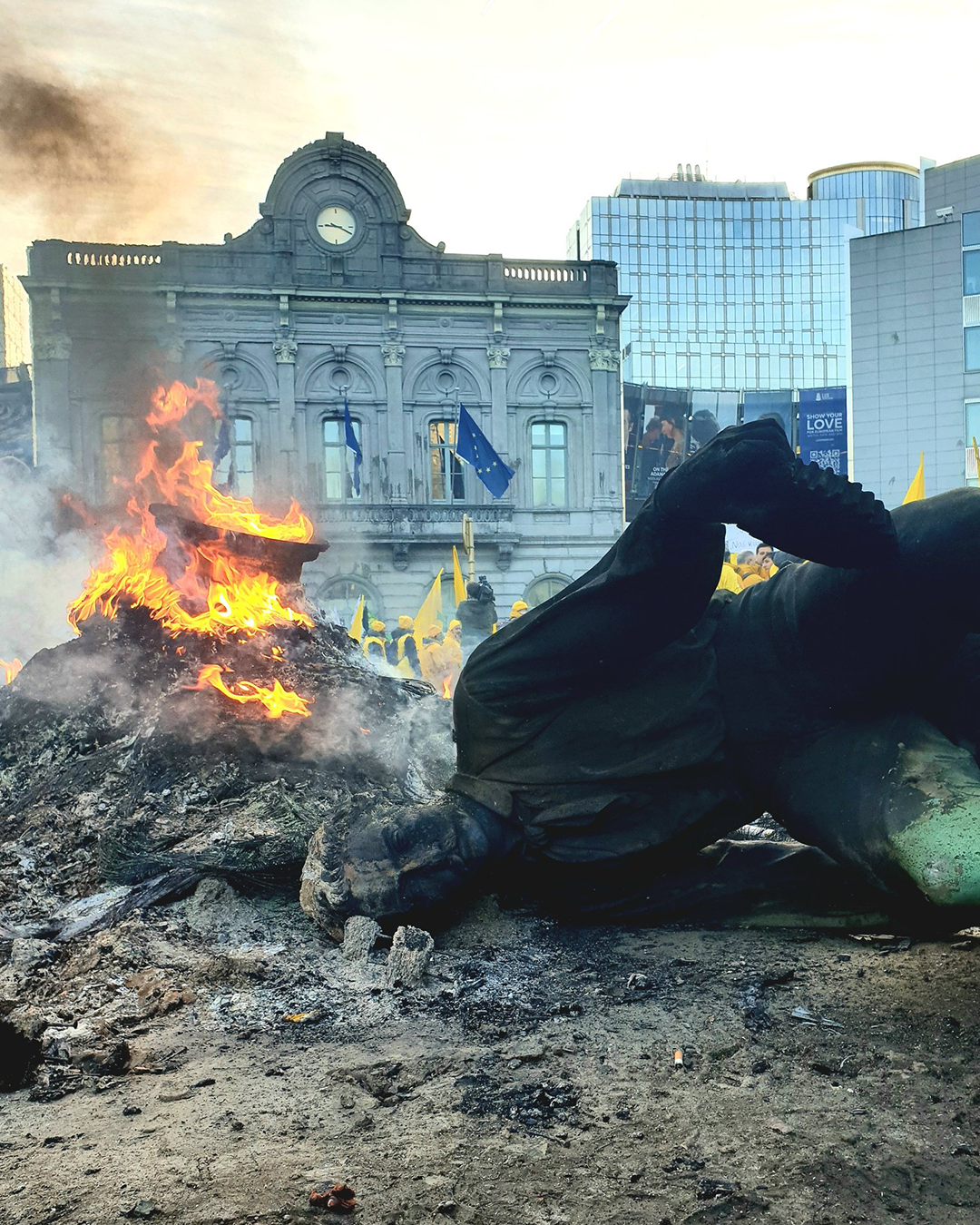 Rond het Europees parlement zijn al zeker 1300 tractoren samengekomen. Europese leiders vergaderen er vandaag over extra geld voor Oekraïne. Maar de boeren willen hun aandacht trekken om de problemen in de landbouw aan te pakken. Sommige boeren gooien eieren en lege bierflesjes naar de politie. Er is ook een standbeeld van z’n sokkel gehaald en zwaar beschadigd. De protesten zorgen al dagen voor verkeersellende op verschillende plekken in België. Sommigen van jullie konden niet naar school. En door de vele files konden ook bijvoorbeeld ambulances niet overal door. Ook vandaag is er kans op grote verkeersproblemen.