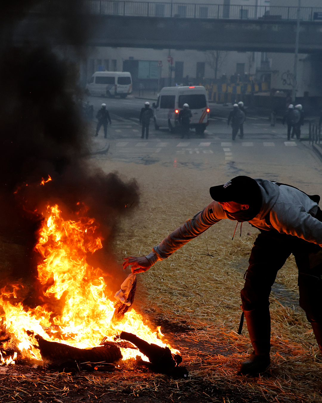Zo’n 900 boeren protesteren in het centrum van Brussel. Daar zitten vandaag de Europese ministers van Landbouw samen. De actievoerders vragen meer eerlijke prijzen, een beter landbouw- en voedselbeleid en aanpassingen van de regels rond stikstof. De boeren blokkeren onder andere de Wetstraat. Op het Schumanplein proberen ze vuur te maken met autobanden. De politie heeft daarom een waterkanon ingezet. Enkele tractoren hebben ook een politieblokkade doorbroken.