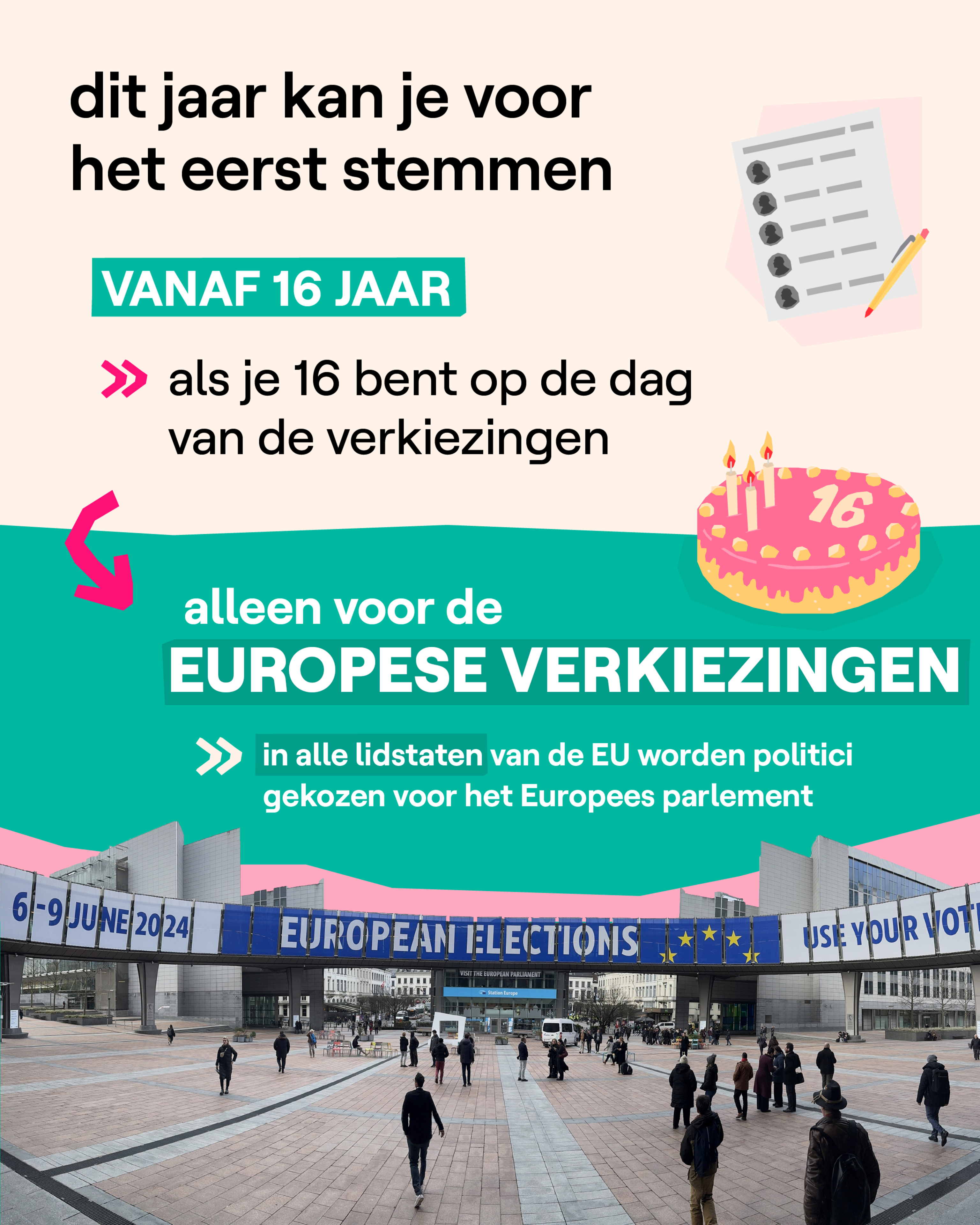 Wie op 9 juni ouder is dan 16, moet nu toch verplicht gaan stemmen voor de Europese verkiezingen. Eerst mochten 16- en 17-jarigen zelf kiezen of ze zouden stemmen. Maar het Grondwettelijk Hof (dat is de belangrijkste rechtbank in ons land) vindt dat minderjarigen en meerderjarigen gelijk behandeld moeten worden en dat iedereen dus verplicht moet gaan stemmen. Op 9 juni zijn het ook federale en Vlaamse verkiezingen, maar daarvoor moeten enkel meerderjarigen gaan stemmen.