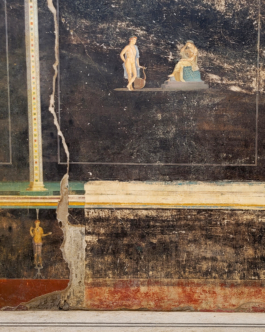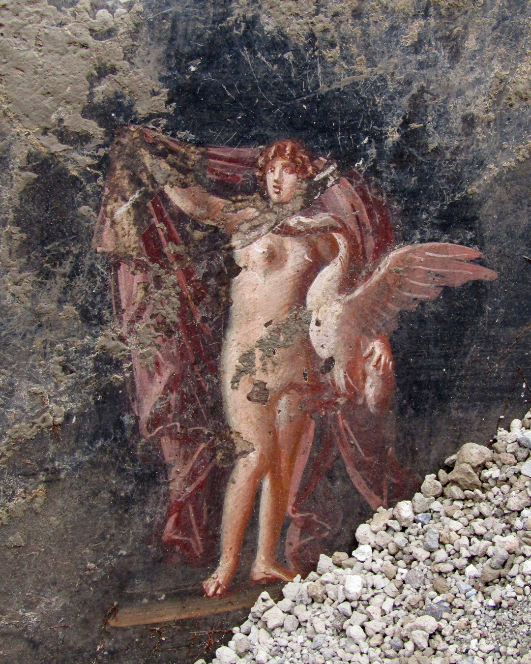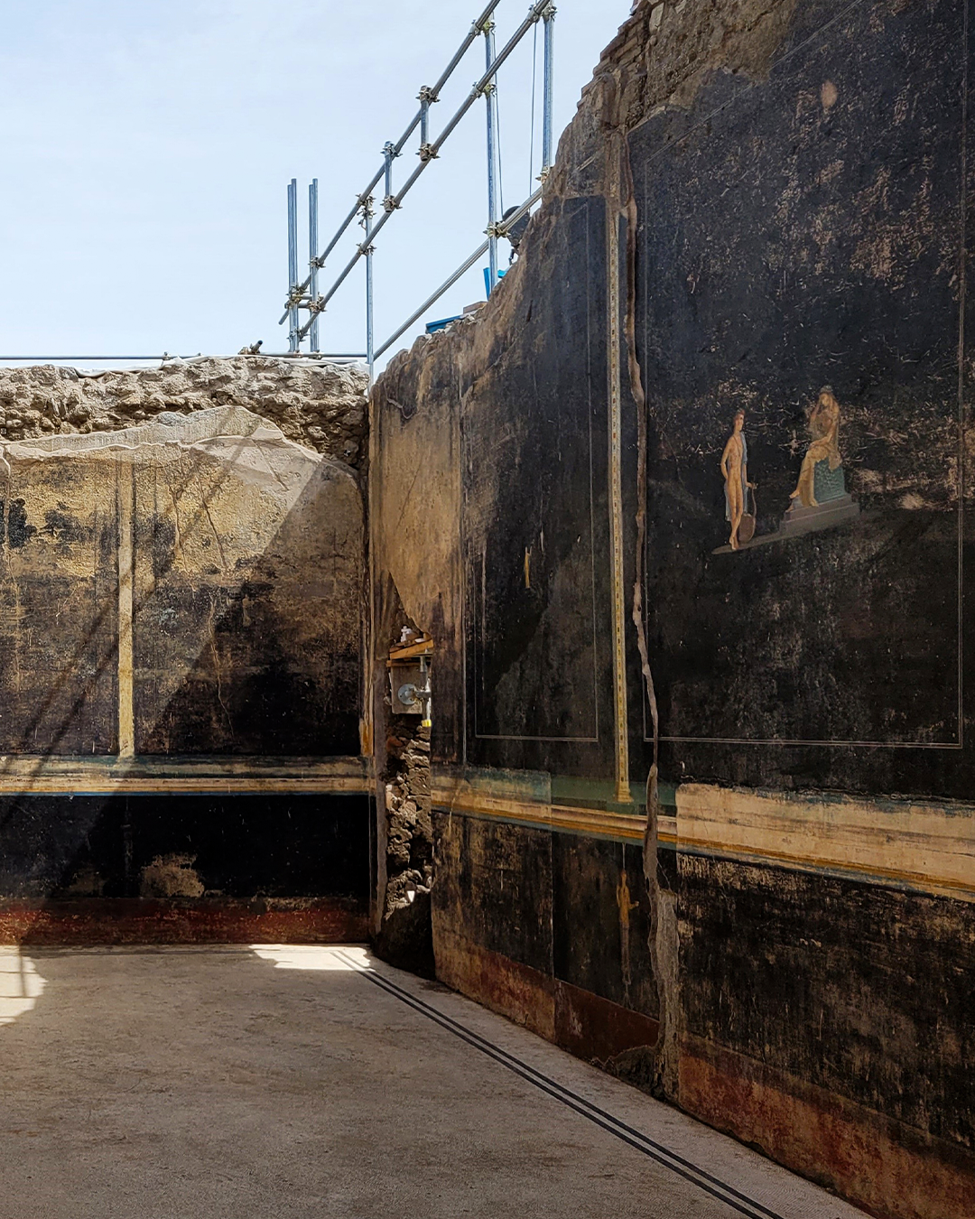 Tijdens opgravingen in Pompeii hebben Italiaanse archeologen een eetkamer ontdekt met kleurrijke fresco’s, dat zijn muurschilderingen. Die zijn uitzonderlijk goed bewaard. Pompeii is een stad in het zuiden van Italië, aan de voet van de vulkaan Vesuvius. In 79 barstte die vulkaan uit: heel Pompeii raakt bedolven onder stenen en as. Daardoor is de stad supergoed bewaard en een schat voor geschiedkundige opgravingen. De laatste vondst in die rij is dus ‘de zwarte kamer’: een eetkamer in een Romeinse villa. De muren zijn zwart zodat je de rook van kaarsen minder goed zou kunnen zien. Op de zwarte muren zijn kleurrijke schilderingen aangebracht over Griekse goden en personages uit verhalen. De vloer is bedekt met meer dan een miljoen mozaieksteentjes en ook zo goed als helemaal intact.