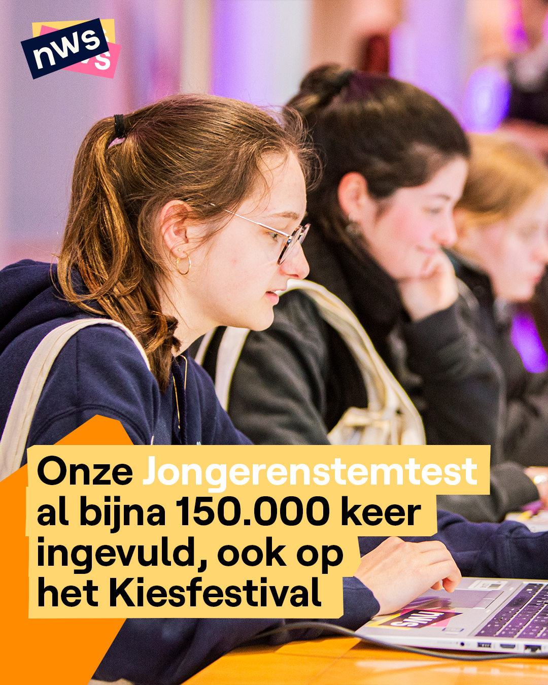 Heb jij de Jongerenstemtest al gedaan op nws.nws.nws.be? De test is al bijna 150.000 keer ingevuld. Ook op het Kiesfestival in het Vlaams Parlement kon je ook onze Jongerenstemtest doen. Wij vroegen jullie wat jullie ervan vonden. De stemtest is ontwikkeld door de UAntwerpen voor nws.nws.nws (VRT NWS) en RTBF.