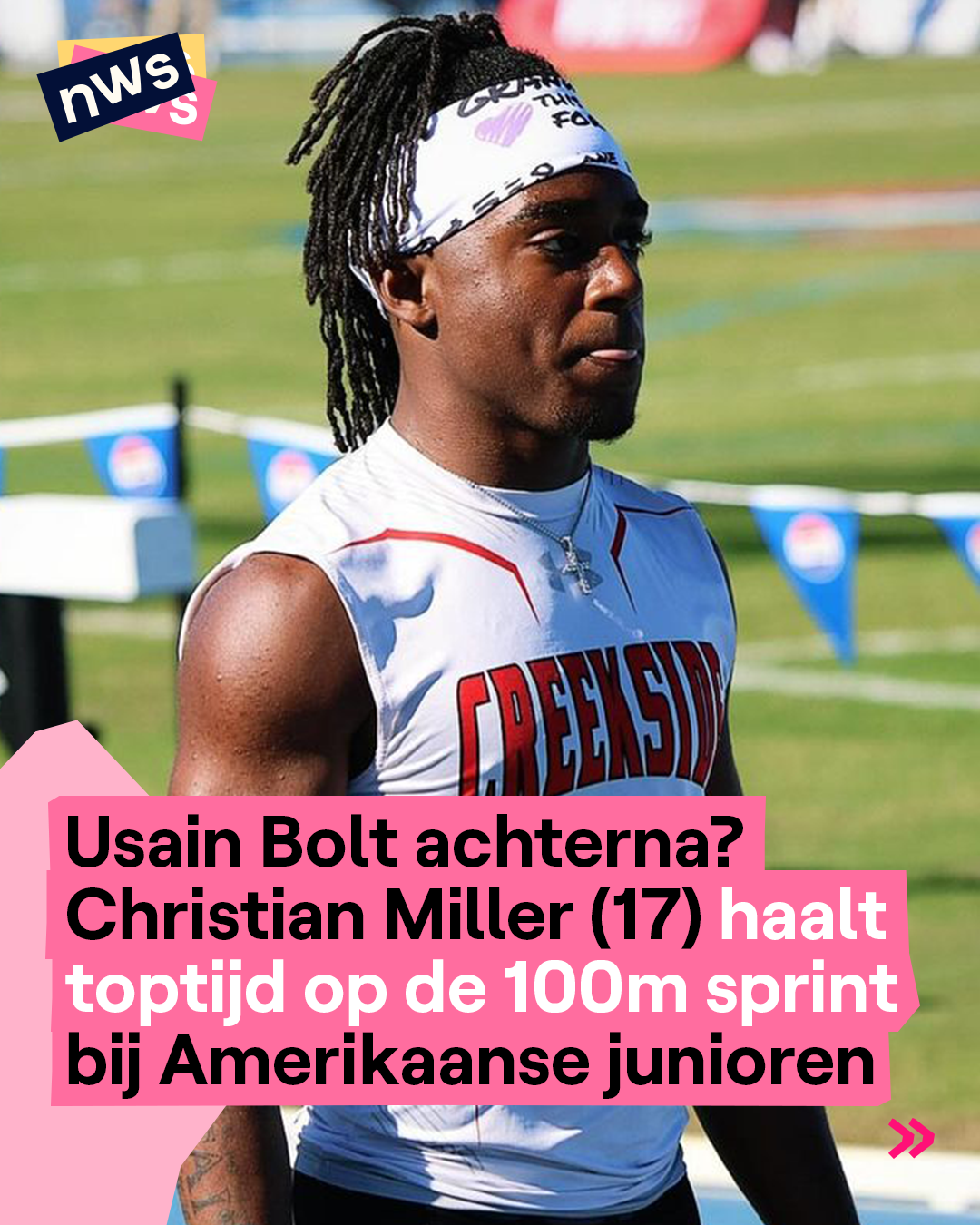 De Amerikaanse atleet Christian Miller (17) heeft afgelopen weekend de snelste 100 meter van dit jaar gelopen. Tijdens een wedstrijd in Clermont (Florida) liep hij de 100 meter in 9,93 seconden. Miller verbeterde zo niet alleen zijn eigen record, maar ook het Amerikaans juniorenrecord. Dat was 9,97 seconden. Miller is door zijn toptijd de jongste man ooit die de 100 meter onder de 10 seconden loopt. De snelste man ter wereld is nog steeds Usain Bolt. Hij liep de 100 meter in 9,58 seconden. Het Belgische record voor de 100 meter staat voorlopig op 10,02 seconden. Miller mag deze zomer misschien zelfs naar de Olympische Spelen in Parijs. Want enkel atleten die de 100 meter in 10 seconden of minder lopen, mogen deelnemen.