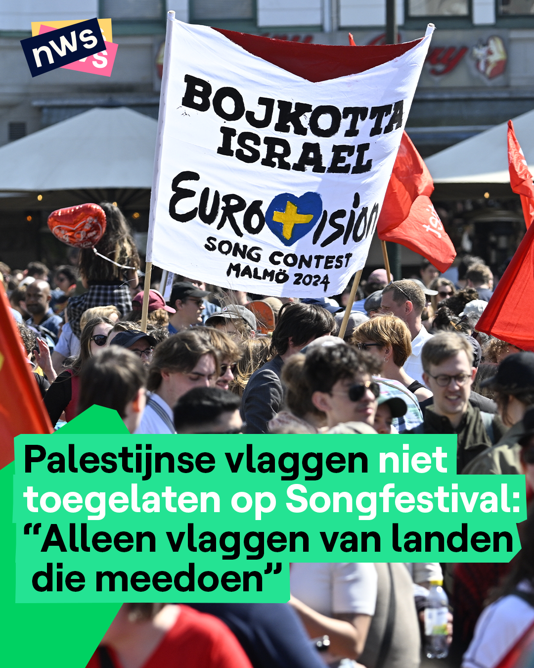 Volgende week begint in Malmö (Zweden) het 68e Eurovisiesongfestival. Ook dit jaar gaan daar duizenden fans van over heel Europa en Australië supporteren voor hun land. Op socials zijn fans al maanden boos omdat Israël mag meedoen, ondanks de zware bombardementen op Gaza en de vele Palestijnse burgerslachtoffers. Daarom wordt verwacht dat er veel protest zal zijn, zowel van de fans als van de artiesten van andere landen. Maar de organisatoren hebben al laten weten dat ze geen spandoeken met politieke statements of vlaggen en symbolen zullen toelaten van landen die niet meedoen aan de wedstrijd. Dat betekent dus dat alle pro-Palestijnse vlaggen en symbolen verboden zijn.