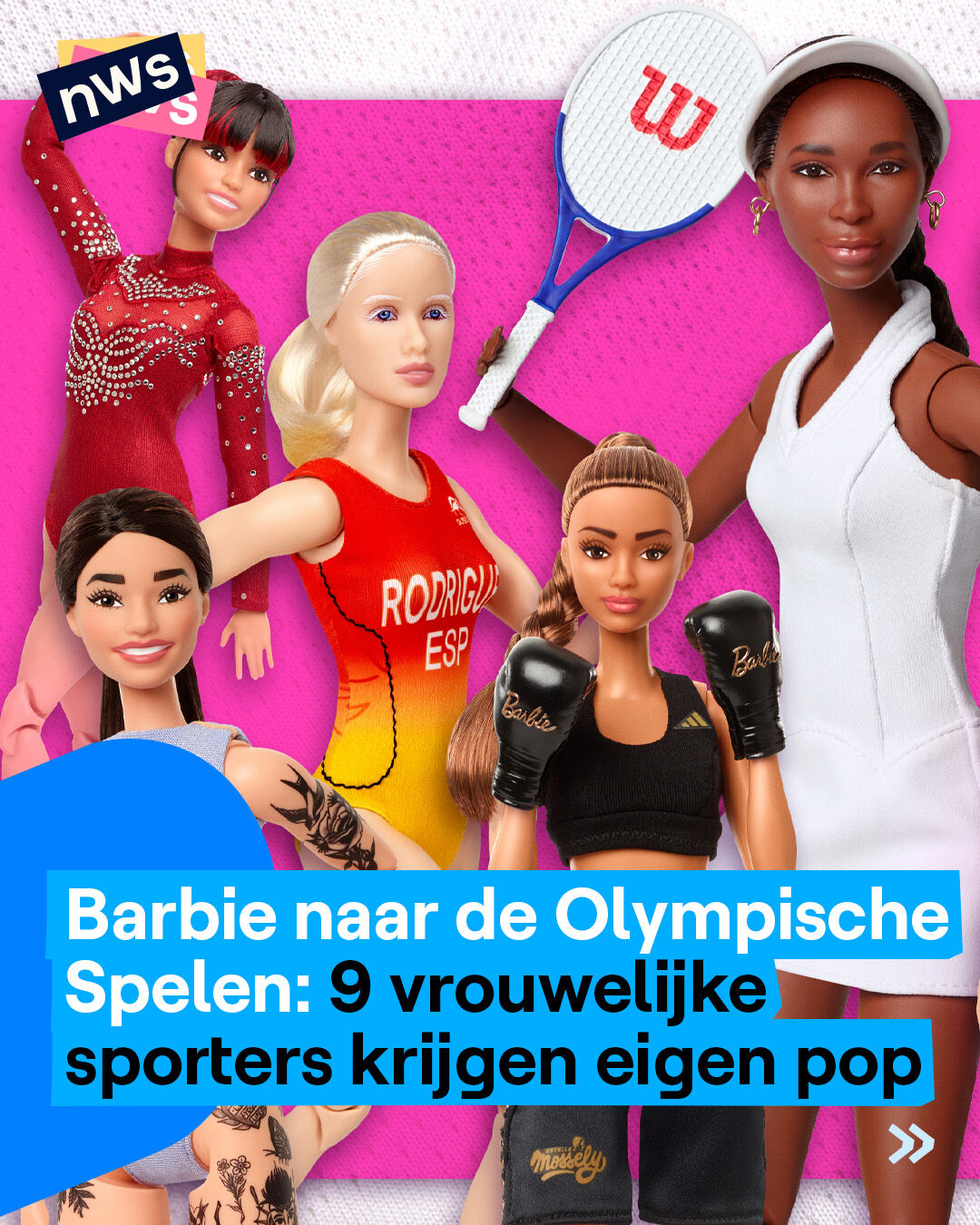 Geen Nafi Thiam of Nina Derwael... wel 9 andere olympische Barbies. Speciaal voor de Olympische Spelen in Parijs, komt Mattel met enkele nieuwe 'rolmodelpoppen'. Onder andere tennisster Venus Williams en voetbalster Mary Fowler worden als Barbiepop uitgebracht. Met de nieuwe poppen willen ze jonge meisjes aanmoedigen om hun dromen te volgen en in zichzelf te geloven. Mattel wil gelijke kansen voor meisjes wereldwijd, zowel in de sport als daarbuiten. Ben jij klaar voor de sportzomer? Op vrijdag 26 juli starten de Olympische Zomerspelen. Op woensdag 28 augustus is het de beurt aan de Paralympische atleten om te schitteren in Parijs.