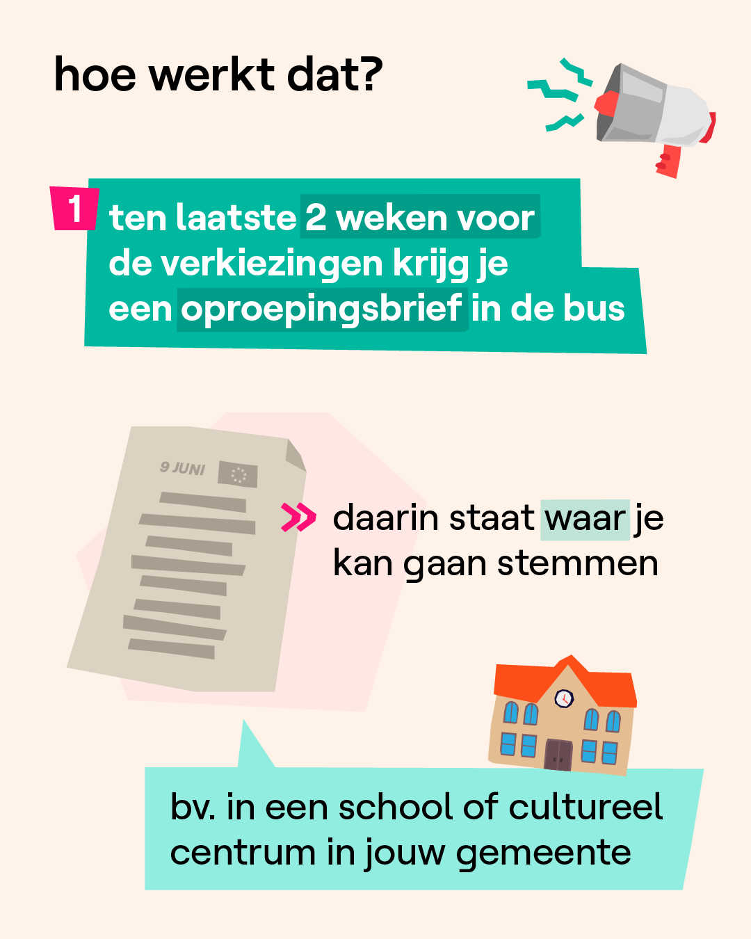 Ben je 16 jaar op 9 juni? Dan kan je mee beslissen welke Belgische politici er in het Europees Parlement zullen zitten. 18 of ouder? Dan kan je ook stemmen voor de federale en de regionale verkiezingen. Maar hoe gaat dat? Wat doe je als je voor het eerst in een stemhokje staat? Waar moet je zijn en wat moet je meenemen? Swipe!
