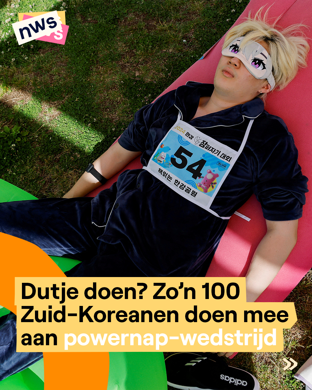 Zou jij kans maken op de hoofdprijs? Zo'n 100 Zuid-Koreanen sloten zaterdag hun ogen voor de Power Nap Contest. De regels van de wedstijd zijn simpel: de deelnemers moeten anderhalf uur slapen. Lijkt makkelijk, maar de slapers werden uitgedaagd. Ze werden af en toe gekieteld met veren én er waren muggengeluiden te horen. De winnaar werd bepaald aan de hand van de hartslag: hoe groter het verschil tussen de hartslag voor en tijdens het dutje, hoe beter de slaapkwaliteit. Wie het diepst slaapt, wint. De organisatoren willen zo aandacht vragen voor het belang van slapen. Zuid-Korea behoort tot de landen met de slechtste slaapkwaliteit ter wereld.