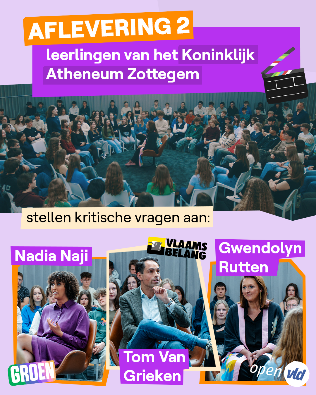 In de tweede aflevering van ‘Eerste keus’ krijgen de zesdejaars van het Koninklijk Atheneum in Zottegem de kans om politici te ondervragen. De school probeert haar leerlingen goed te informeren over de maatschappij en politiek. Maar wat zijn de thema’s waar de leerlingen écht van wakker liggen?