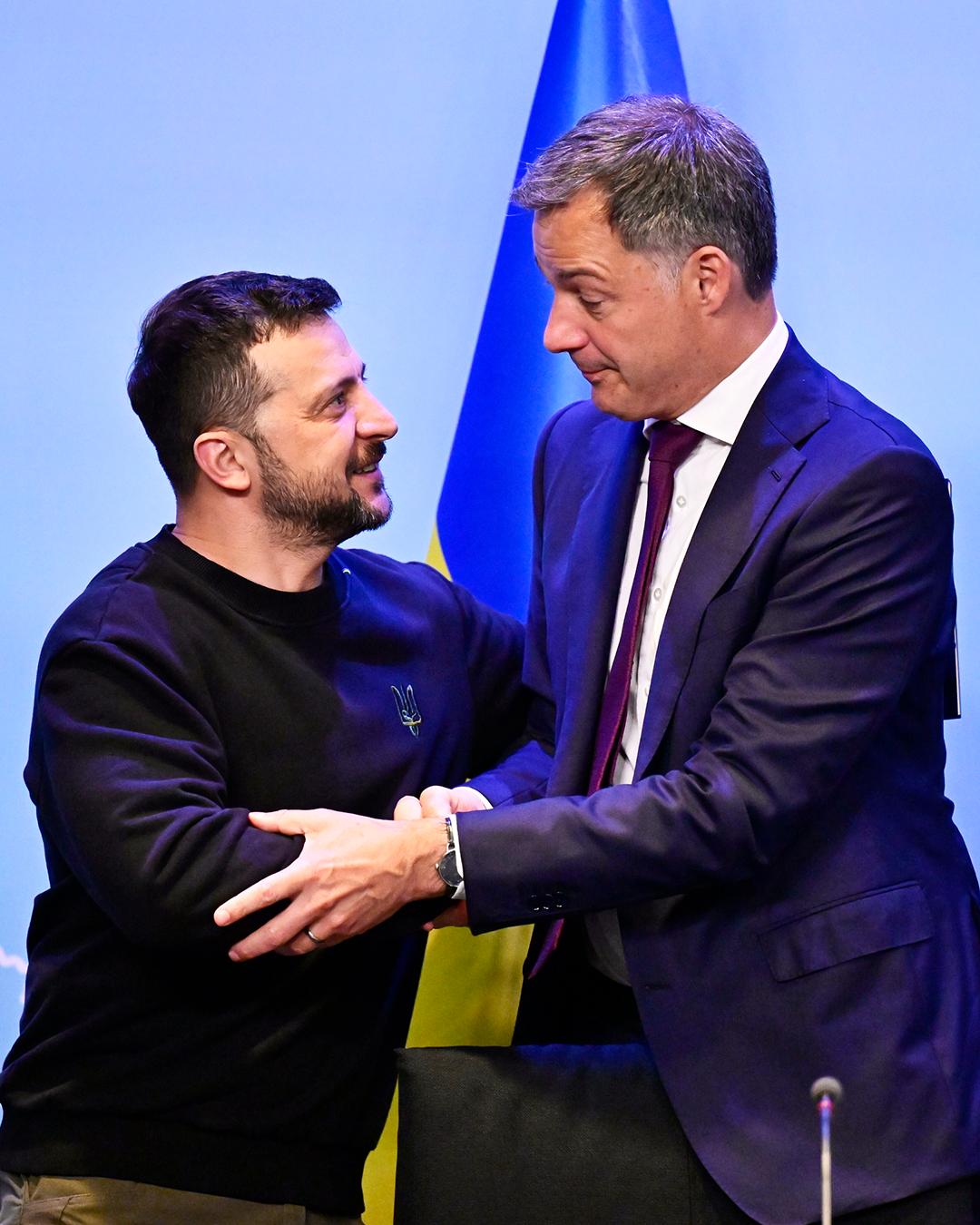 De president van Oekraïne, Volodimir Zelenski, is op bezoek in ons land. Deze voormiddag ontmoette hij premier Alexander De Croo en koning Filip. Zelenski is hier om een nieuw veiligheidsakkoord te ondertekenen. Daarin staat dat Oekraïne 1 miljard euro aan militaire steun krijgt van België. Ons land wil ook tegen 2028 dertig F-16 gevechtsvliegtuigen leveren aan Oekraïne. De eerste zou al voor het einde van dit jaar worden bezorgd. "Oekraïne verdient de juiste middelen om zijn bevolking te beschermen", zei premier De Croo. Oekraïne mag de F-16's wel enkel op eigen grondgebied gebruiken. Het bezoek van Zelenski was eigenlijk 2 weken geleden gepland, maar door "de toestand aan het front" kon hij last minute niet vertrekken.