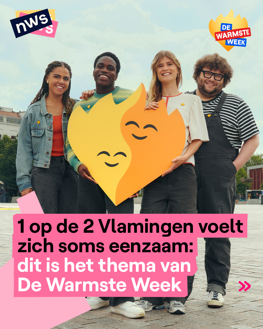 De Warmste Week wil dit jaar samen vlammen tegen eenzaamheid. Bijna de helft van de Vlamingen voelt zich soms eenzaam. En ook bij jongeren is eenzaamheid een groot probleem, door bijvoorbeeld problemen op school, door ziekte, door je afkomst, ... Daar wil Warmste Week, de jaarlijkse solidariteitsactie van VRT, iets aan veranderen, zodat iedereen zich verbonden voelt. Eva De Roo, Manu Van Acker, Dara Oguntubi en Francisco Schuster zijn dit jaar de ambassadeurs van de actie. Net als vorig jaar wordt het ongetwijfeld weer een feestje met veel live-muziek op 't Zand in Brugge, van 18 tot en met 24 december. Projecten die zich inzetten tegen eenzaamheid kunnen vanaf nu geregistreerd worden op dewarmsteweek.be.