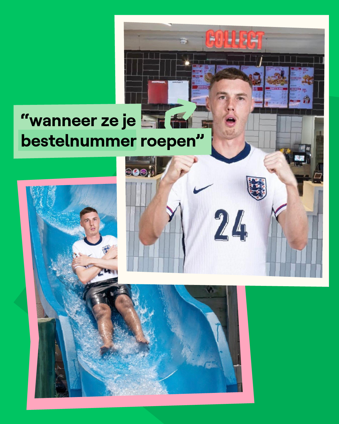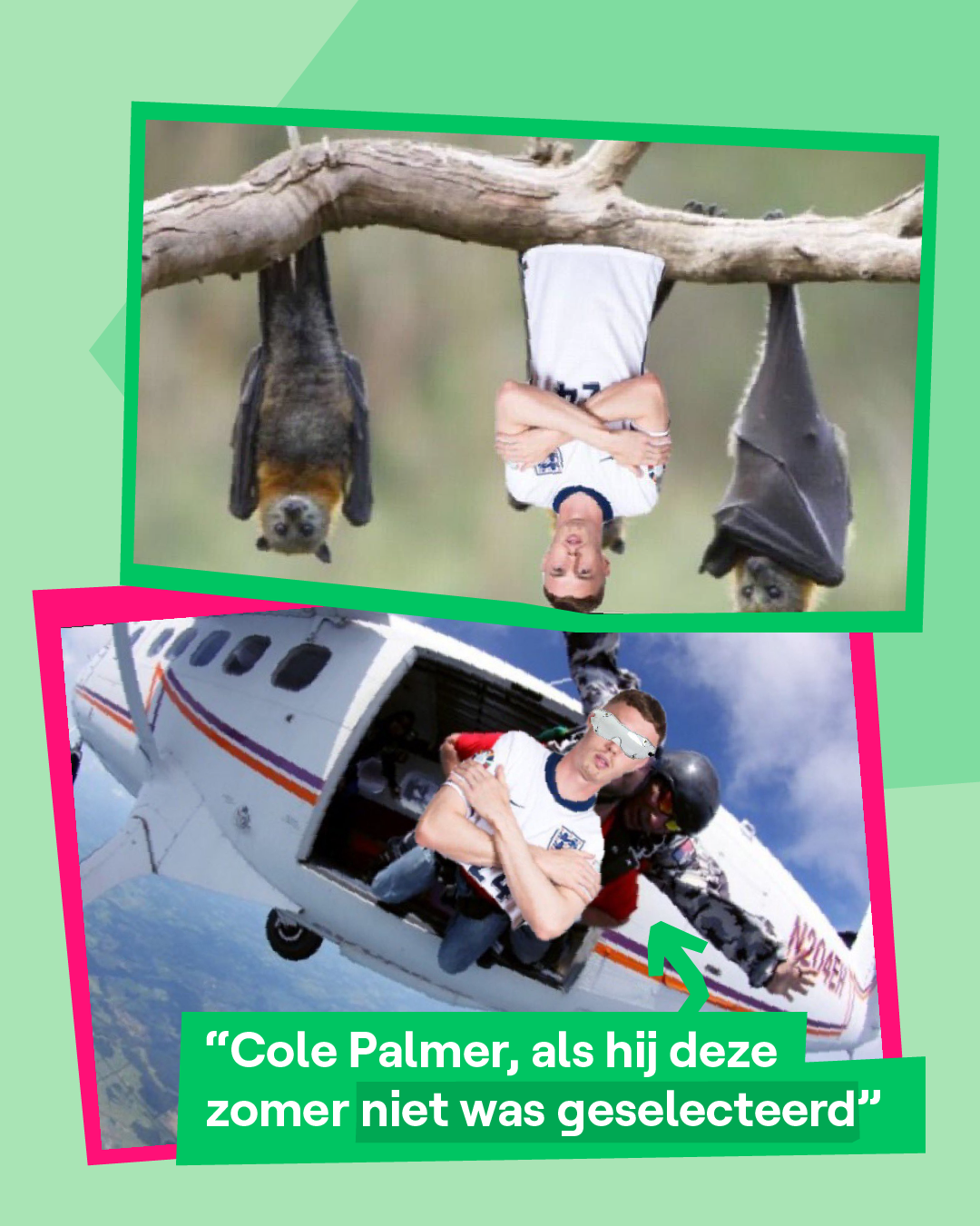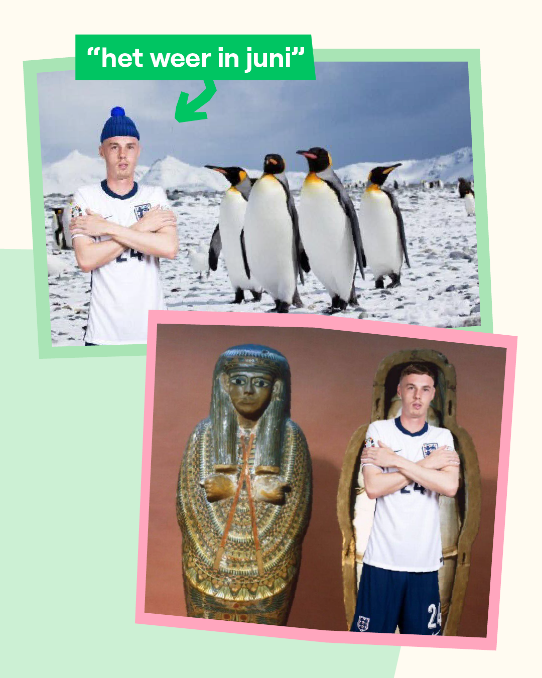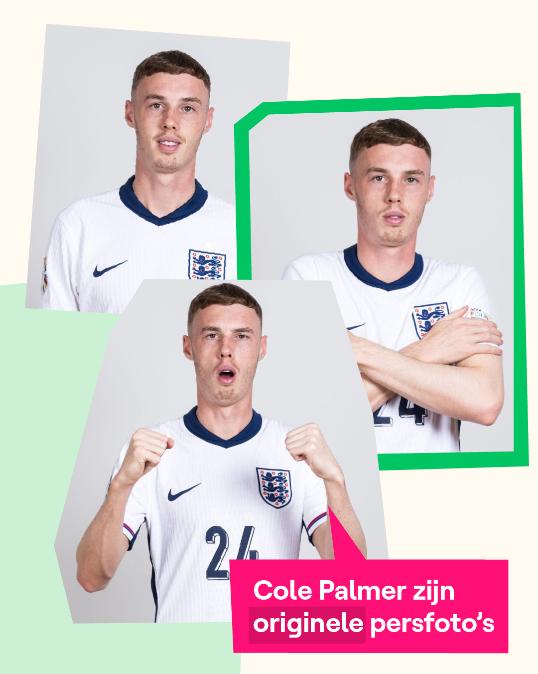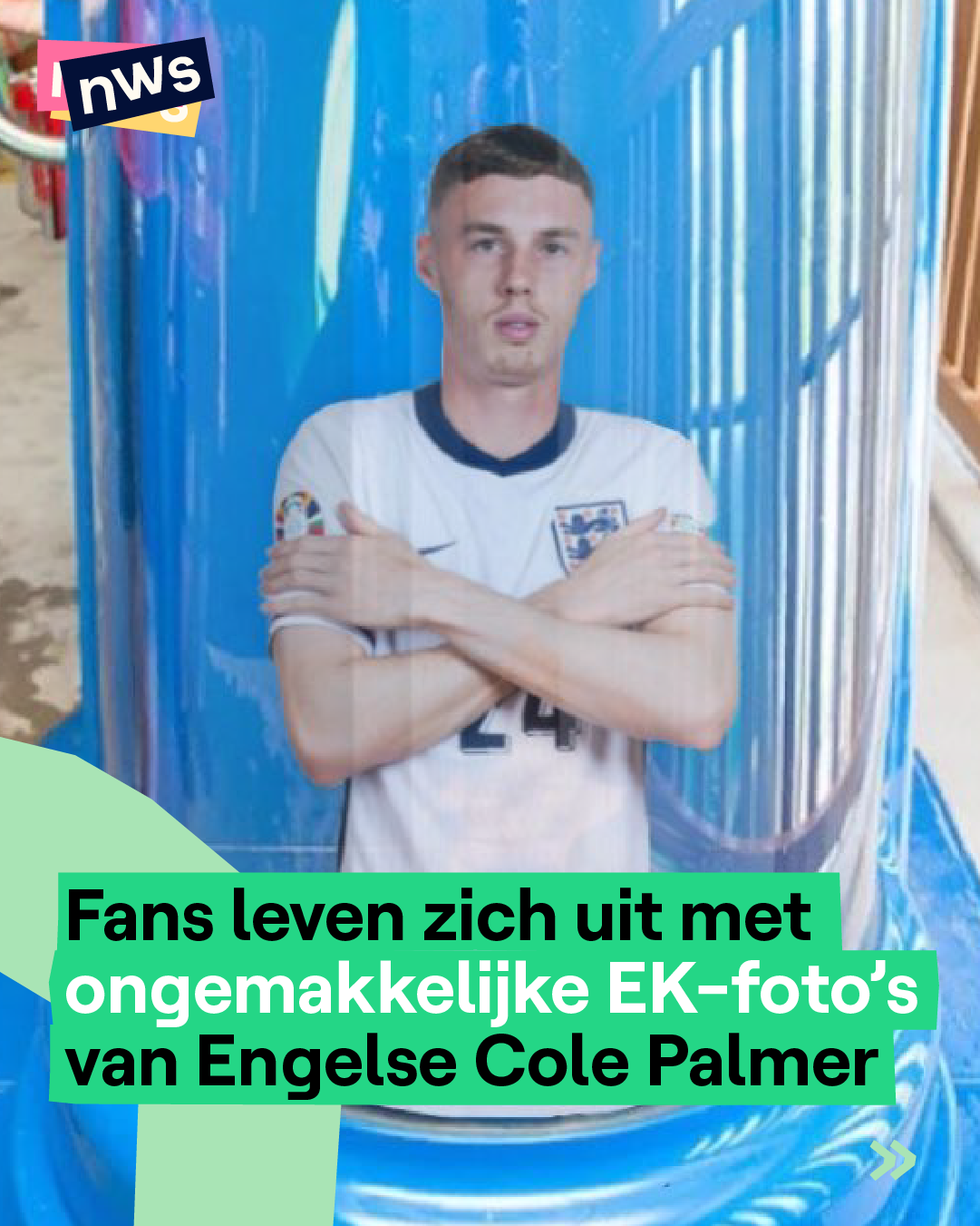 Say cheese! Heb jij deze memes al zien passeren op je socials? Fans amuseren zich met de persfoto's die de Engelse voetballer Cole Palmer (22) liet maken voor het EK. Op de foto's doet hij zijn 'celebration move', da's de beweging waarmee hij op het veld een doelpunt viert. Alleen ziet zijn pose er op de foto net iets braver en ongemakkelijker uit dan in het echt... Omdat hij tijdens de move zijn handen over zijn armen wrijft (om zich op te warmen) wordt hij ook wel wel "Cold Palmer of "'The Coolest kid in the Premier League" genoemd. 'IJskoud zijn' in een sport betekent dat je heel kalm en gefocust kan blijven, ook al ligt er veel druk op je schouders. Cole Palmer speelt als aanvaller bij Chelsea en het Engelse elftal.