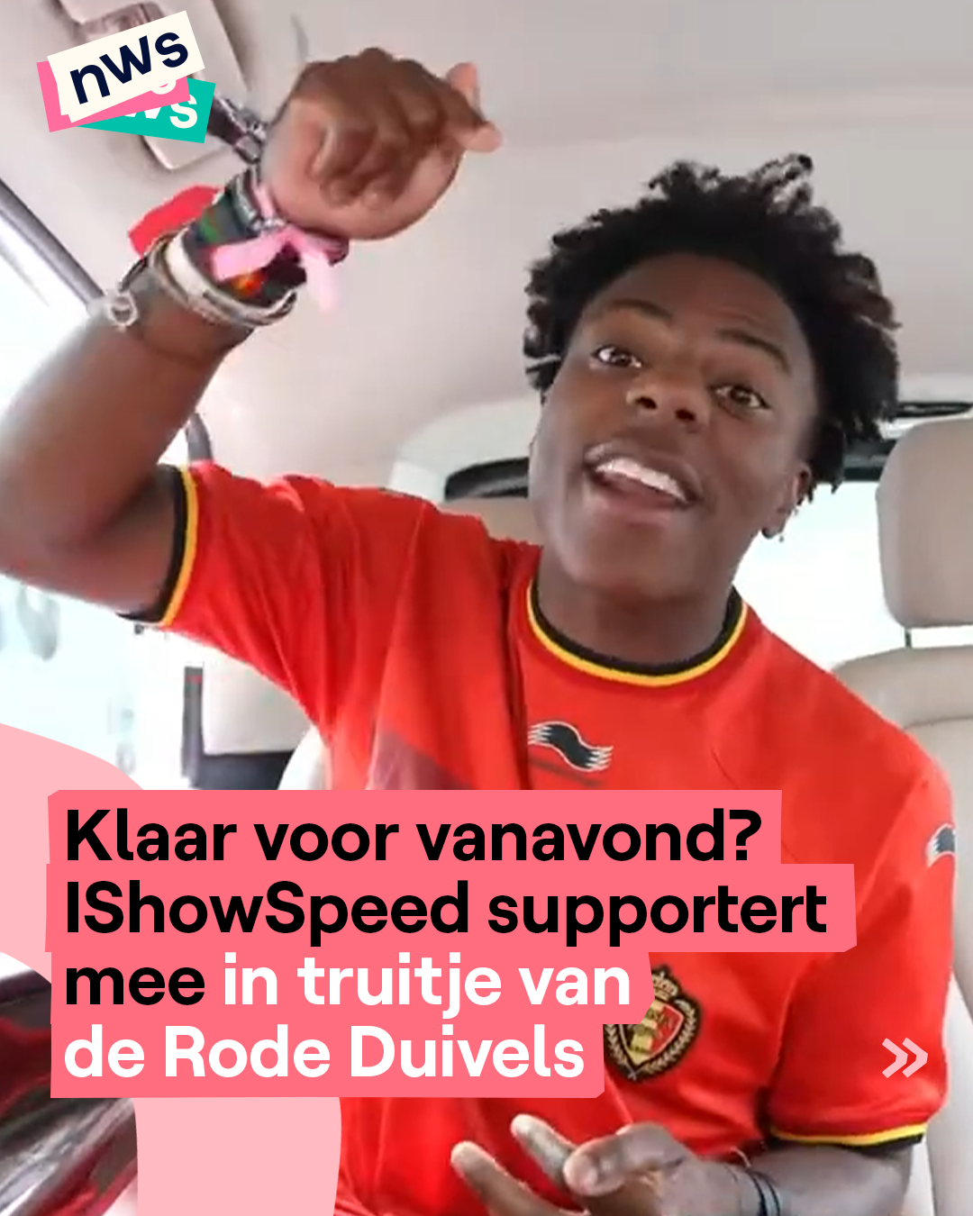 De Amerikaanse youtuber IShowSpeed was zich gisteren al aan het opwarmen voor de match van de Rode Duivels vandaag, want hij droeg een truitje van het Belgische nationale elftal tijdens de livestream op zijn YouTube-kanaal. Speed verblijft een hele maand in Duitsland, waar het EK voetbal plaatsvindt. Hij wil er verschillende wedstrijden bezoeken en erover streamen. Of hij ook echt supportert voor onze Duivels is niet helemaal duidelijk. Benieuwd of hij vanavond opduikt in het stadion in Frankfurt waar de Duivels spelen. Vanavond om 18 uur speelt België tegen Slovakije.