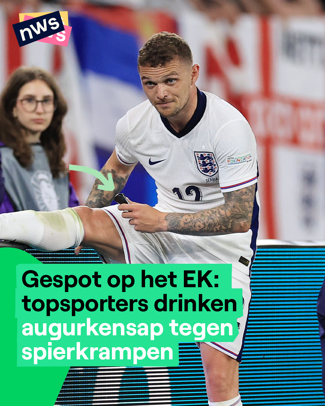 Spotted: Engels voetballer Kieran Trippier kapt snel een shotje augurkensap binnen tijdens zijn EK-wedstrijd. Waarom? Topsporters drinken augurkenconcentraat om spierkrampen te verminderen of weg te krijgen. Ze gebruiken daarvoor niet zomaar het sap van een pot augurken, maar een hoge concentratie van ongeveer 12 augurken in totaal. Of zo’n shot ook écht een groot effect heeft, is nog niet zo zeker. Volgens sportdiëtisten is er niet veel wetenschappelijk bewijs rond. De superhoge zuurtegraad zou een reflex opwekken in je hersenen waardoor je spieren gaan ontspannen. Het “wondermiddeltje” wordt al jaren gebruikt bij wielrenners en tennissers. Onlangs werd ook tennisser Carlos Alcaraz gespot met het sapje tijdens zijn Roland Garros-finale. Let op! Het is niet de bedoeling dat je nu zelf veel augurkensap gaat drinken. De enorme zuurtegraad kan schadelijk zijn voor je maag, darmen en tanden.