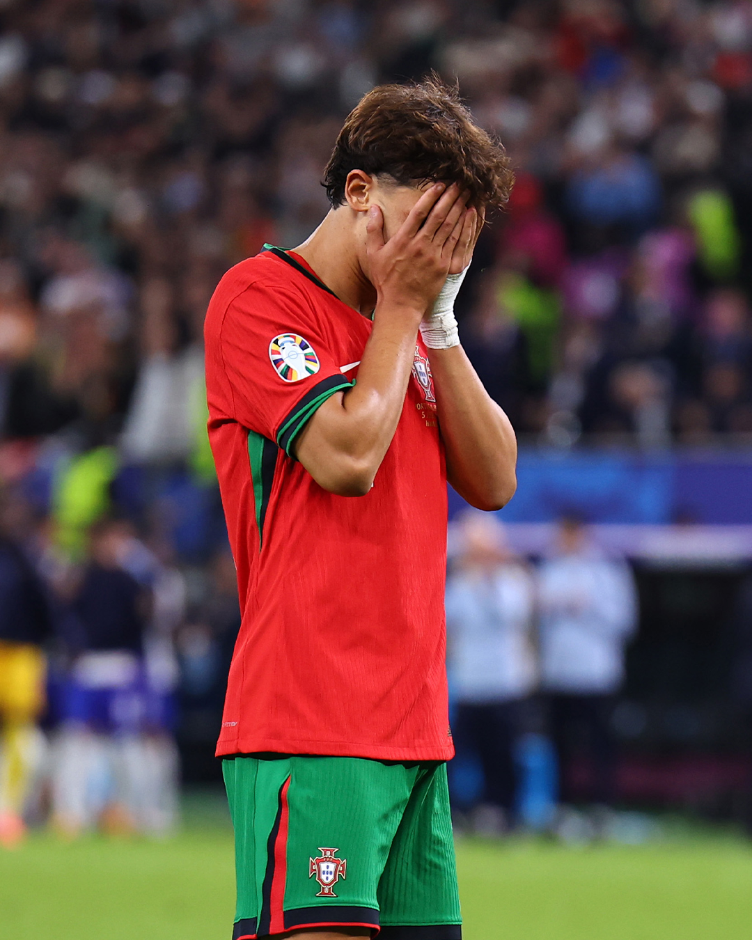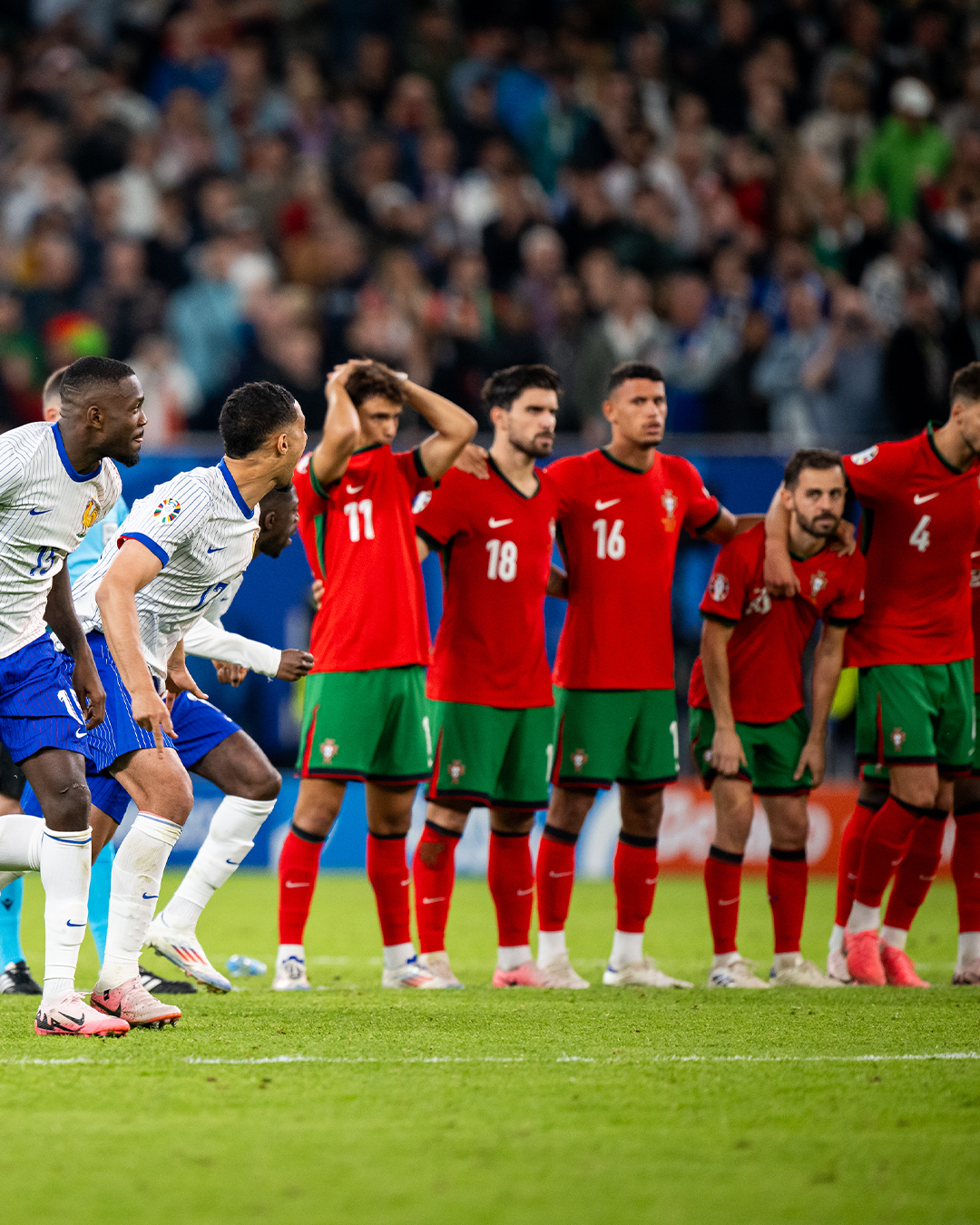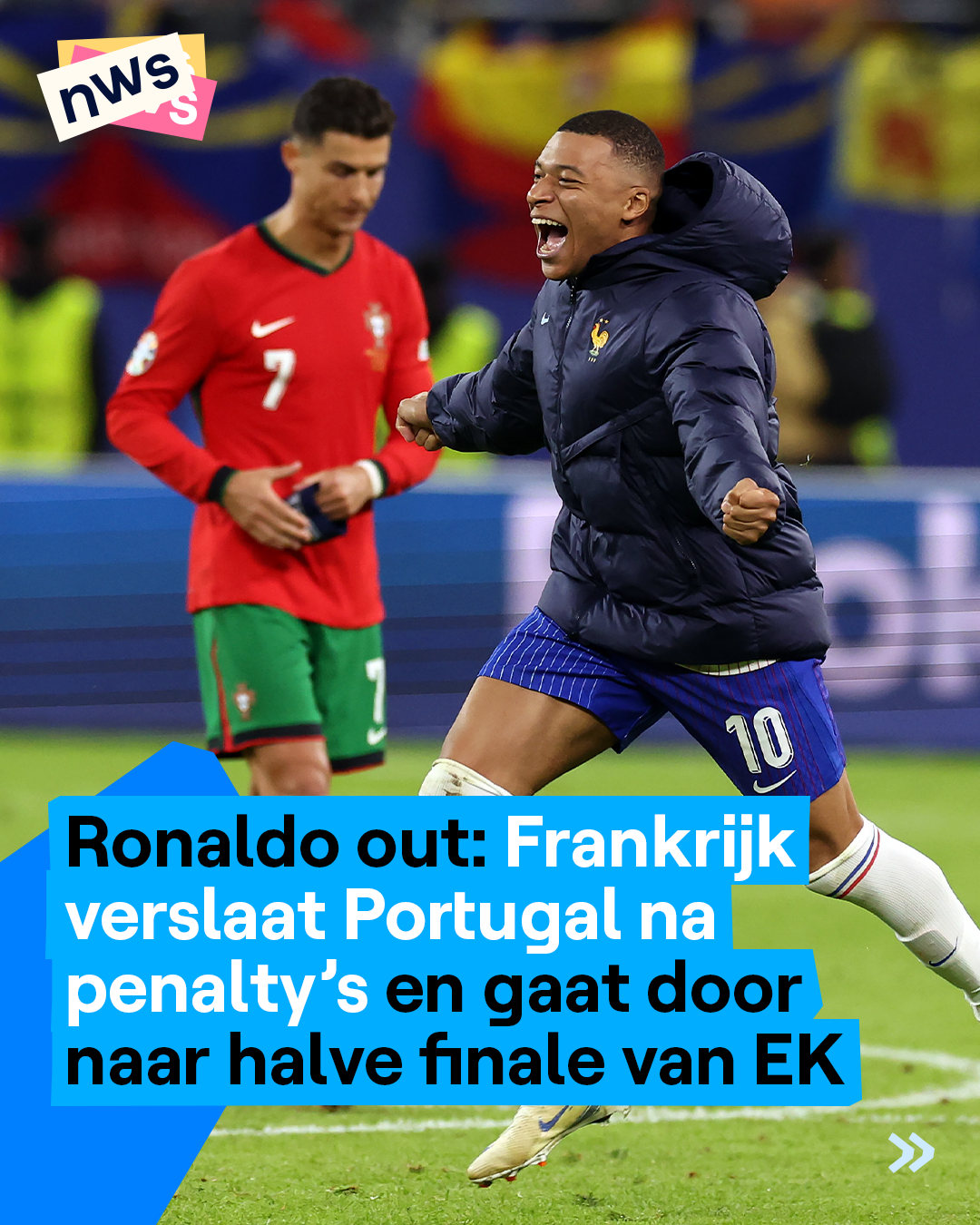 De tweede halve finalist is bekend: Frankrijk! Les Bleus speelden de Portugezen gisteravond naar huis na een superspannende strafschoppenreeks. Na 120 minuten bleef het 0-0 en was het dus tijd voor penalty’s. Frankrijk scoorde ze allemaal, de Portugese João Félix (24) miste 1 penalty. En zo zit de EK-droom van Ronaldo, Martinez en co er helaas op. Vanavond worden de laatste twee plekjes voor de halve finales verdeeld. Engeland strijdt om 18 uur tegen Zwitserland en Nederland speelt om 21 uur tegen Turkije. Frankrijk speelt op dinsdag 9 juli de eerste halve finale van het EK tegen Spanje. Je kan alles live volgen via VRT MAX en Sporza. Swipe!