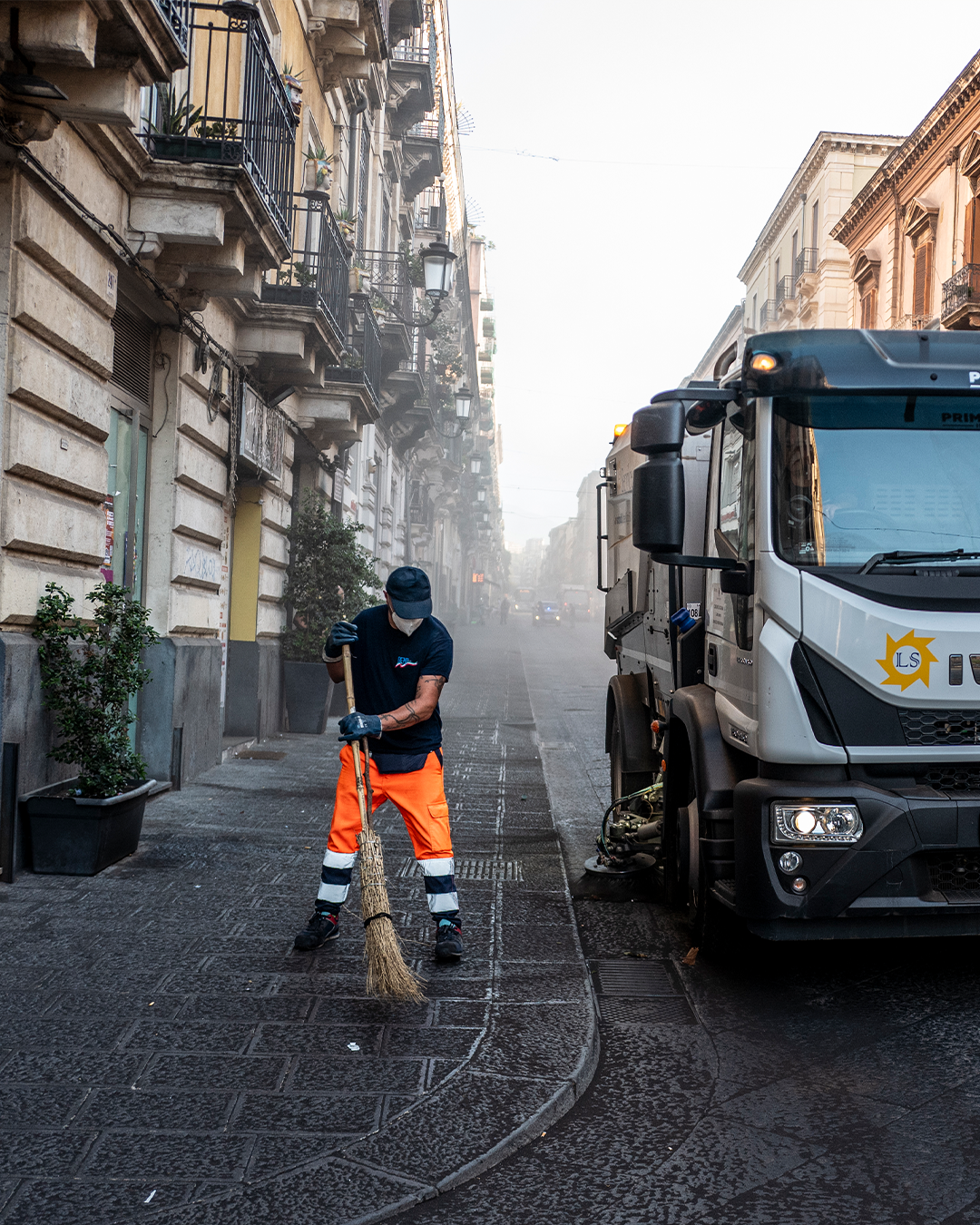 De Etna, Europa’s hoogste actieve vulkaan, barstte vorige week uit. De vulkaan ligt op het Italiaanse eiland Sicilië en spuwt elk jaar af en toe lava. Deze keer schoten de as- en rookwolken tot wel 4,5 kilometer de lucht in. Ook de kleinere vulkaan Stromboli die op een eilandje naast Sicilië ligt, barstte uit. Met als resultaat dat de Siciliaanse straten vol zwart vulkanische as kwamen te liggen. De internationale luchthaven op het eiland moest zelfs een aantal dagen sluiten omdat de start- en landingsbaan door de dikke laag as onbruikbaar waren. Er was dus heel wat veeg- en borstelwerk nodig om alles terug asvrij te krijgen. Swipe!