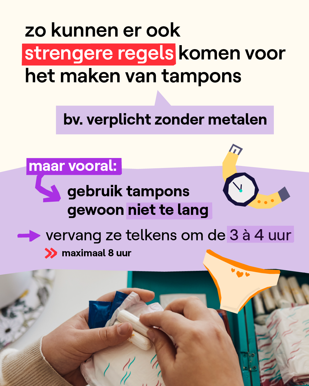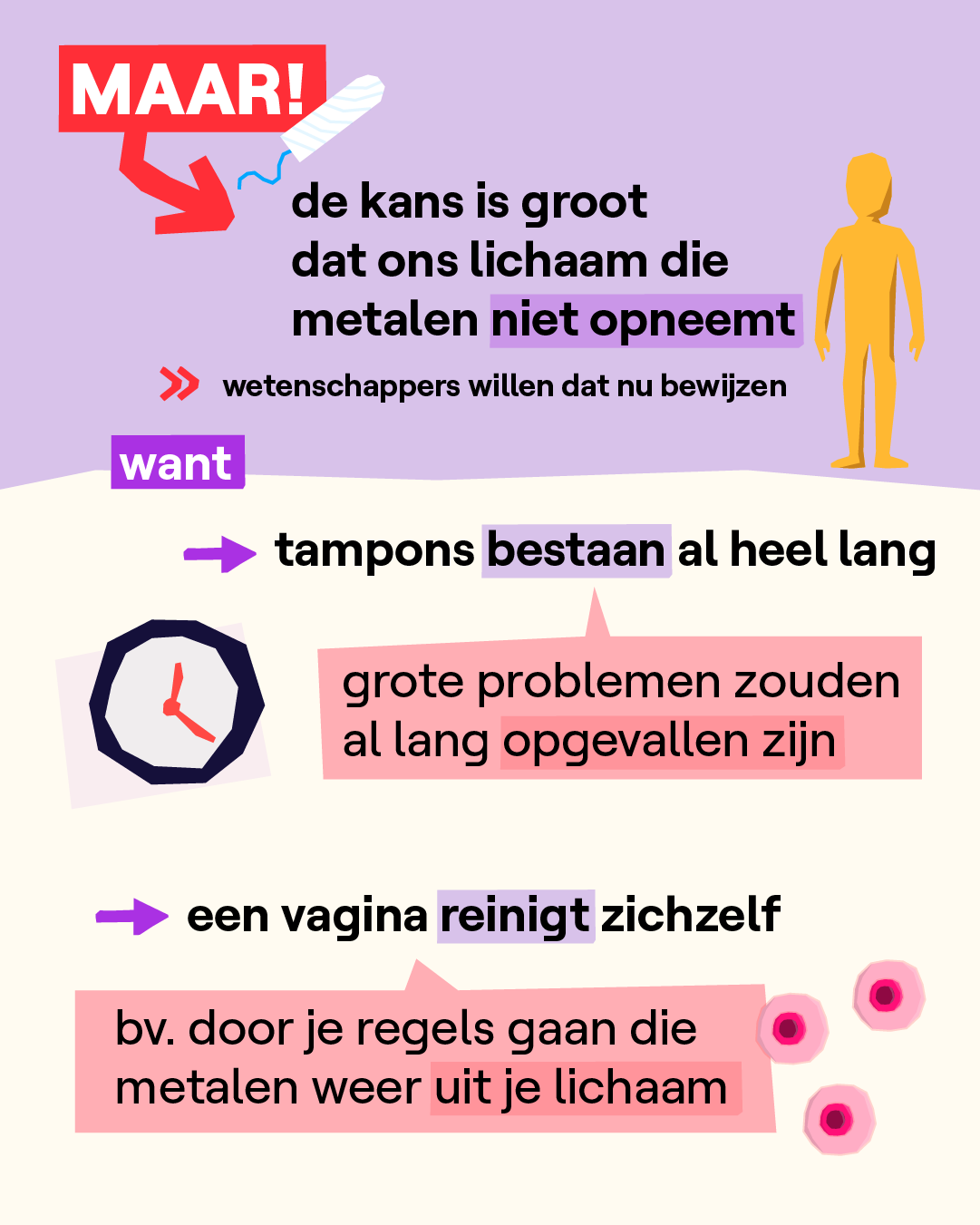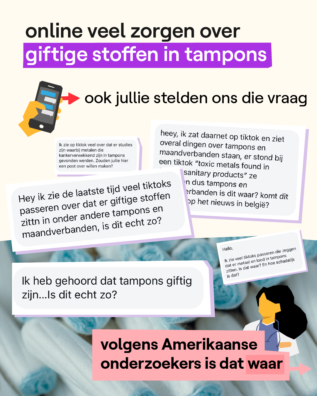 Ja, in tampons zitten schadelijke stoffen en toch is er geen reden tot paniek