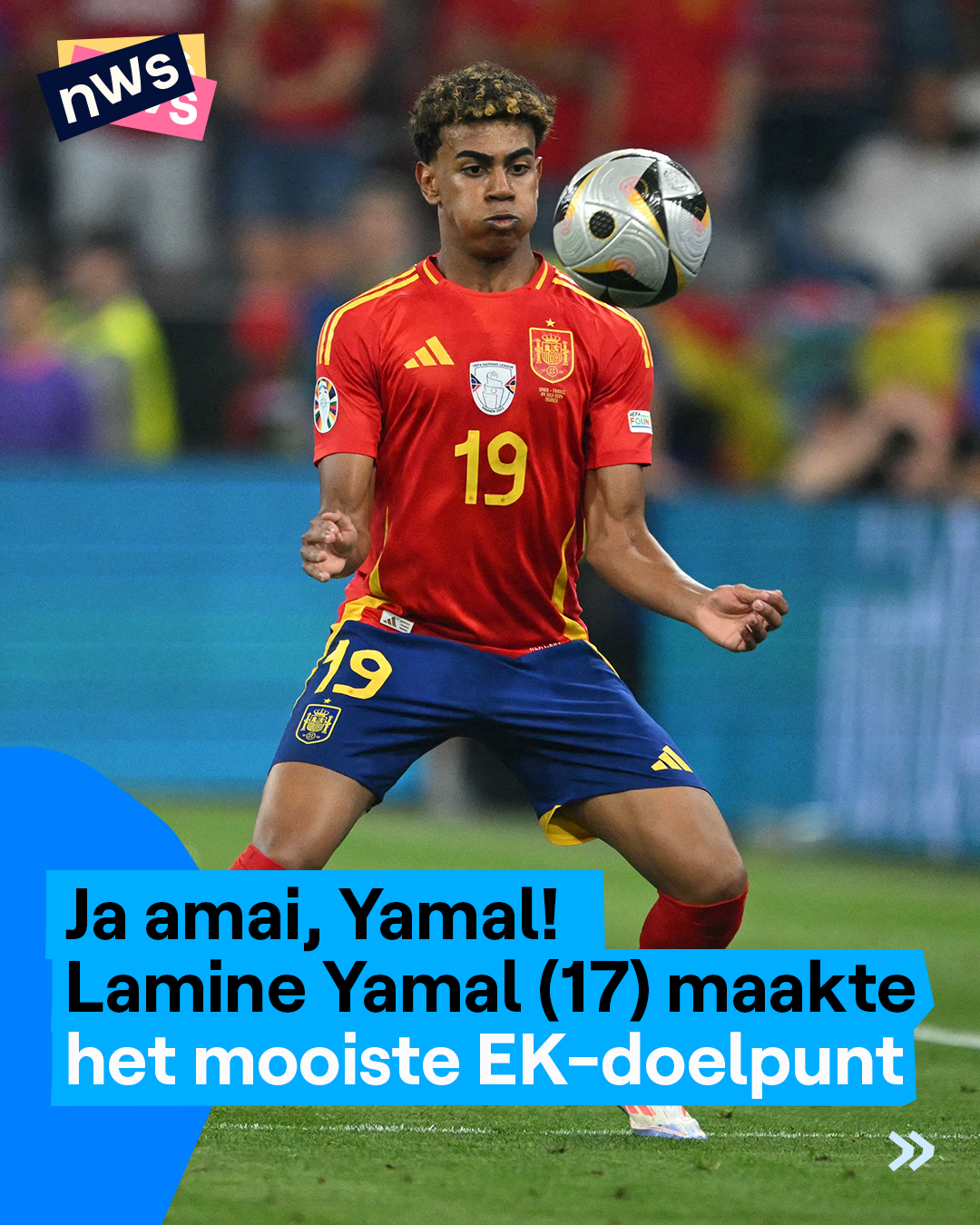 De jonge Spaanse topspeler Lamine Yamal blijft zelfs na het EK nog punten scoren. UEFA, de Europese voetbalbond, verkoos zijn goal tegen Frankrijk in de halve finale als het mooiste doelpunt van heel het tornooi. Met dat punt maakte hij toen de gelijkmaker. UEFA zette hem bovenaan een lijstje van de tien mooiste EK-goals. Op plaats twee staat de Engelse speler Jude Bellingham met zijn goal tijdens de match tegen Slowakije. De laatste plaats is voor Oranjespeler Xavi Simons. Hij scoorde de openingsgoal tijdens de halve finale tegen Engeland. Swipe voor Yamals legendarische goal!