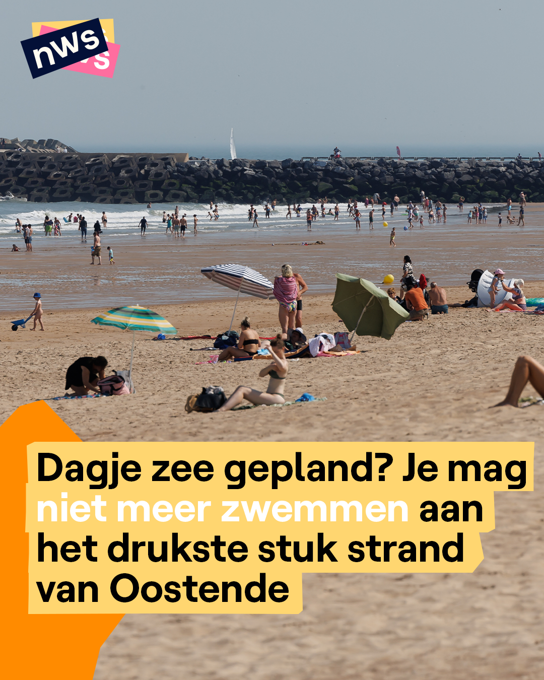 Binnenkort een dagje Oostende gepland? Aan het drukste strand van de badstad is het vanaf nu verboden om te zwemmen. Met je voeten gewoon in het water gaan mag wel nog. Het gaat om het stuk tussen de westelijke havendam en strandhoofd 2, da’s bijna aan het Kursaal. Waarom? Het kan er gevaarlijk zijn door zandruggen. Dat zijn kleine soort kliffen die ontstaan op het strand. Bij hoogwater zie je de kliffen niet, waardoor je kunt struikelen of vallen. De burgemeester heeft het stuk daarom afgesloten, en dat al zeker tot het einde van deze zomer. Het is een trouwens een drukke dag aan de Belgische kust. De hotels zijn dit weekend tot 90 procent volgeboekt en er komen ook heel wat dagjestoeristen
