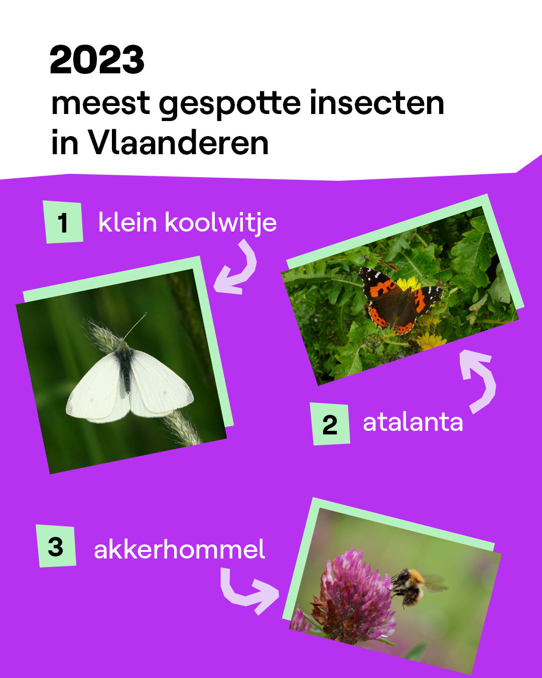 Minder muggen die je wakker zoemen? Dat klinkt heerlijk, maar dat is het niet voor de natuur. Er zijn steeds minder insecten in Vlaanderen, meldt Natuurpunt ongerust. Daarom organiseert Natuurpunt elk jaar tijdens de zomermaanden een 'Insectenzomer challenge'. De uitdaging is om zo veel mogelijk insecten te spotten. Je kan met de app ObsIdentify ontdekken welke insecten in jouw buurt leven. Swipe om te zien welke in 2023 het meest gespot werden.