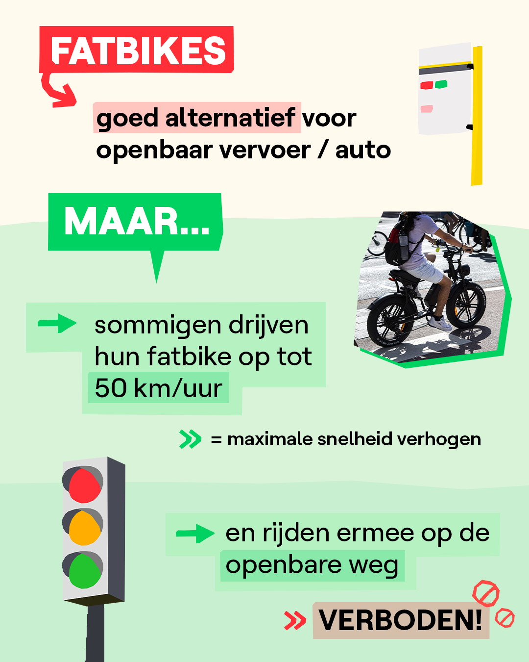 In Nederland zijn de fatbikes al een tijdje een hype. Een hype die af en toe ook voor problemen zorgt. Opgevoerde fatbikes veroorzaken er namelijk veel ongevallen. Daarom willen ze er nu strengere regels, zoals een lagere maximumsnelheid en een minimumleeftijd. De Nederlandse overheid nam onlangs ook 6.000 fatbikes in beslag die uit China kwamen en te snel konden rijden. In België zijn daar nog geen meldingen van. De fatbike wordt wel populairder, maar de meeste jongeren rijden nog steeds met een gewone fiets.