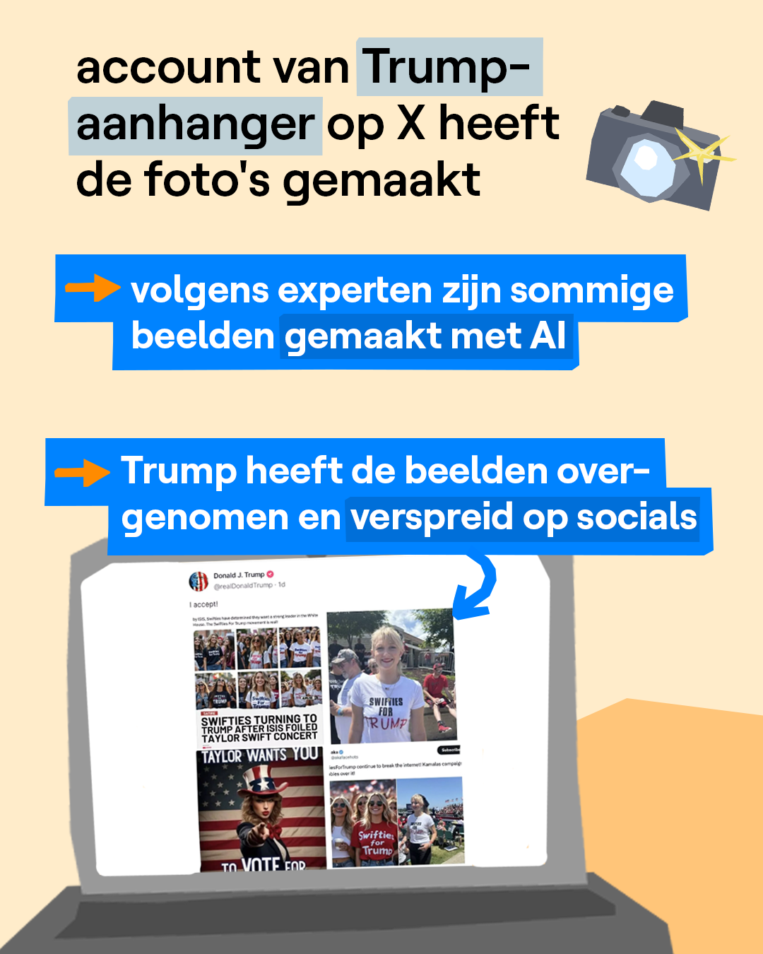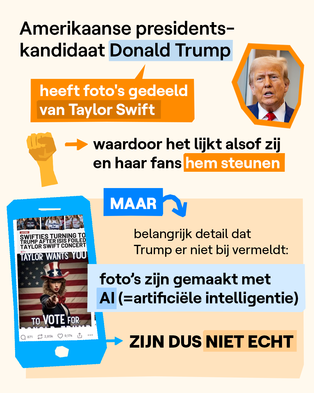 Donald Trump deelt valse foto's en doet alsof Taylor Swift hem steunt