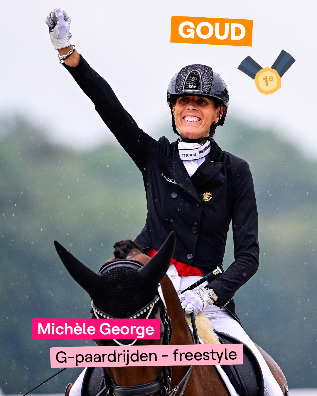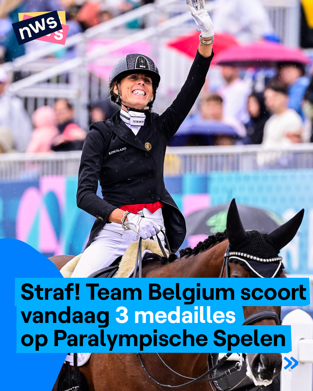 Team Belgium blijft scoren op de Paralympische Spelen in Parijs. Michèle George haalde met haar paard ‘Best of 8’ een gouden medaille in de freestyleproef van het G-paardrijden. Da’s al haar tweede goud in Parijs en haar zevende paralympische titel in totaal. Ook tafeltennisser Laurens Devos haalde goud, net als vier jaar geleden. Tatyana Lebrun pakte verrassend brons na de diskwalificatie van de Nederlandse zwemster. Het totaal ligt nu op 15 medailles voor Team Belgium.