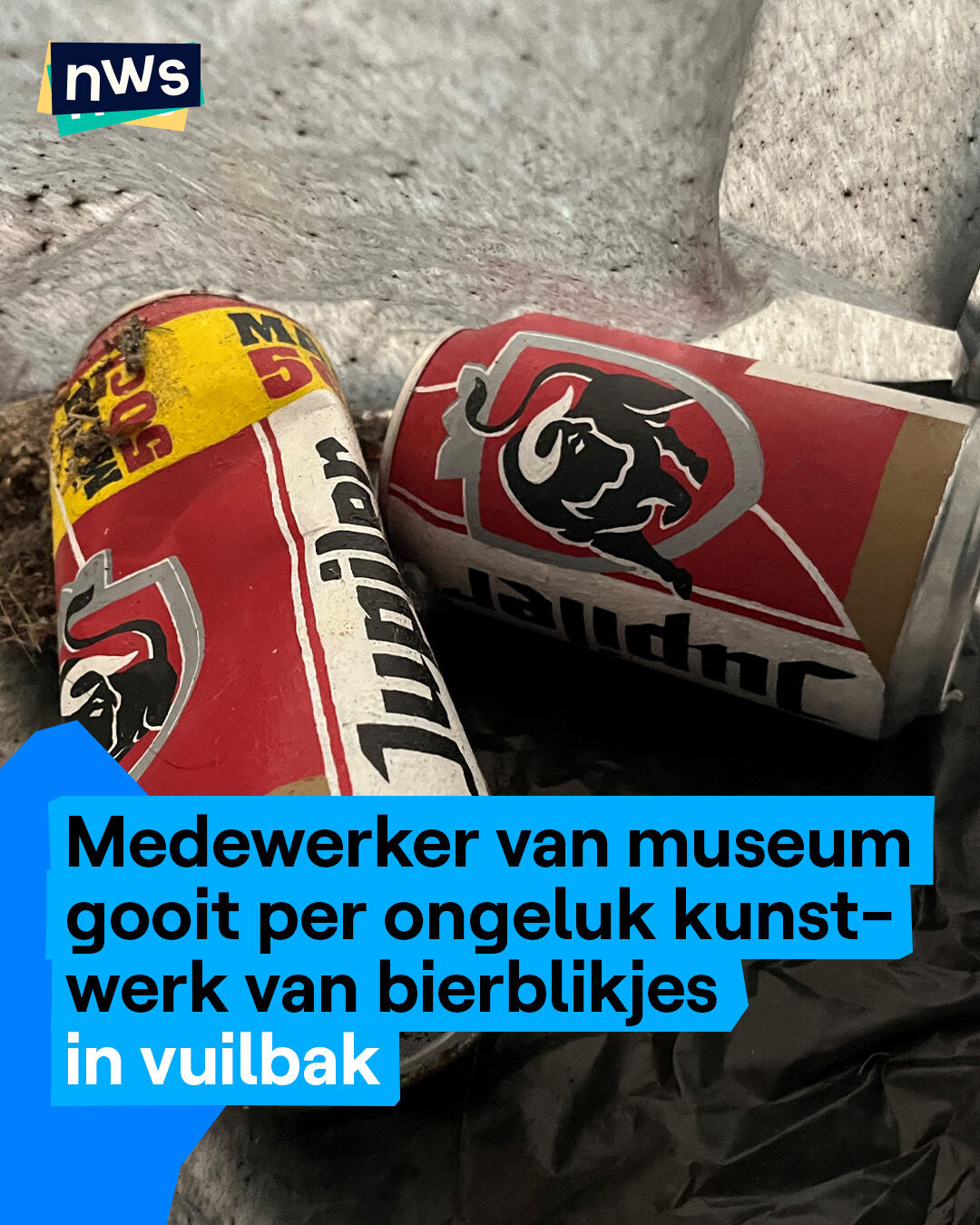 Een dure vergissing in het LAM-museum in Nederland. Een technieker gooide het kunstwerk 'All the Good Times We Spent Together' van de Franse kunstenaar Alexandre Lavet zomaar in de vuilbak. Het gaat om twee handgeschilderde Jupiler-blikken die tentoongesteld lagen in een glazen lift. De man dacht dat het om "afval" ging en ruimde de blikjes netjes op. Het museum plaatst wel vaker kunstwerken op unieke plekken. “We proberen de bezoeker altijd te verrassen.” De technieker wist dus duidelijk niets van de verrassing. Het kunstwerk kon gelukkig net op tijd gered worden uit de vuilbak en krijgt voorlopig een plaatsje in de ingang van het museum.