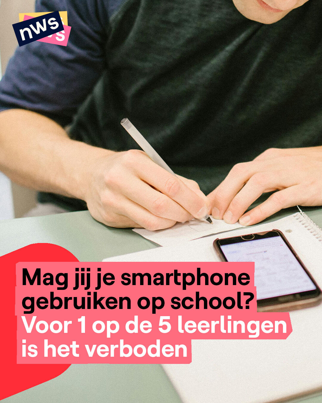 Volgens het nieuw regeerakkoord van de Vlaamse regering komt er een smartphoneverbod in de lagere school. Maar steeds meer middelbare scholen willen dat verbod ook. Volgens een bevraging van de Vlaamse Scholierenkoepel mag 1 op de 5 leerlingen geen smartphone gebruiken op school. 66% mag de smartphone enkel gebruiken tijdens de pauzes. Je school kiest helemaal zelf welke regels er gelden. Voor 42% van de tieners uit de eerste graad zou er een totaalverbod gelden. In de derde graad is dit maar bij 12%. De scholierenkoepel is niet tegen een verbod, maar wil dat scholen rekening houden met wat de leerlingen daarvan vinden. "Als een school een verbod wil invoeren, is het misschien nuttig om samen te zitten met de leerlingenraad of met een groepje leerlingen om erover te praten."