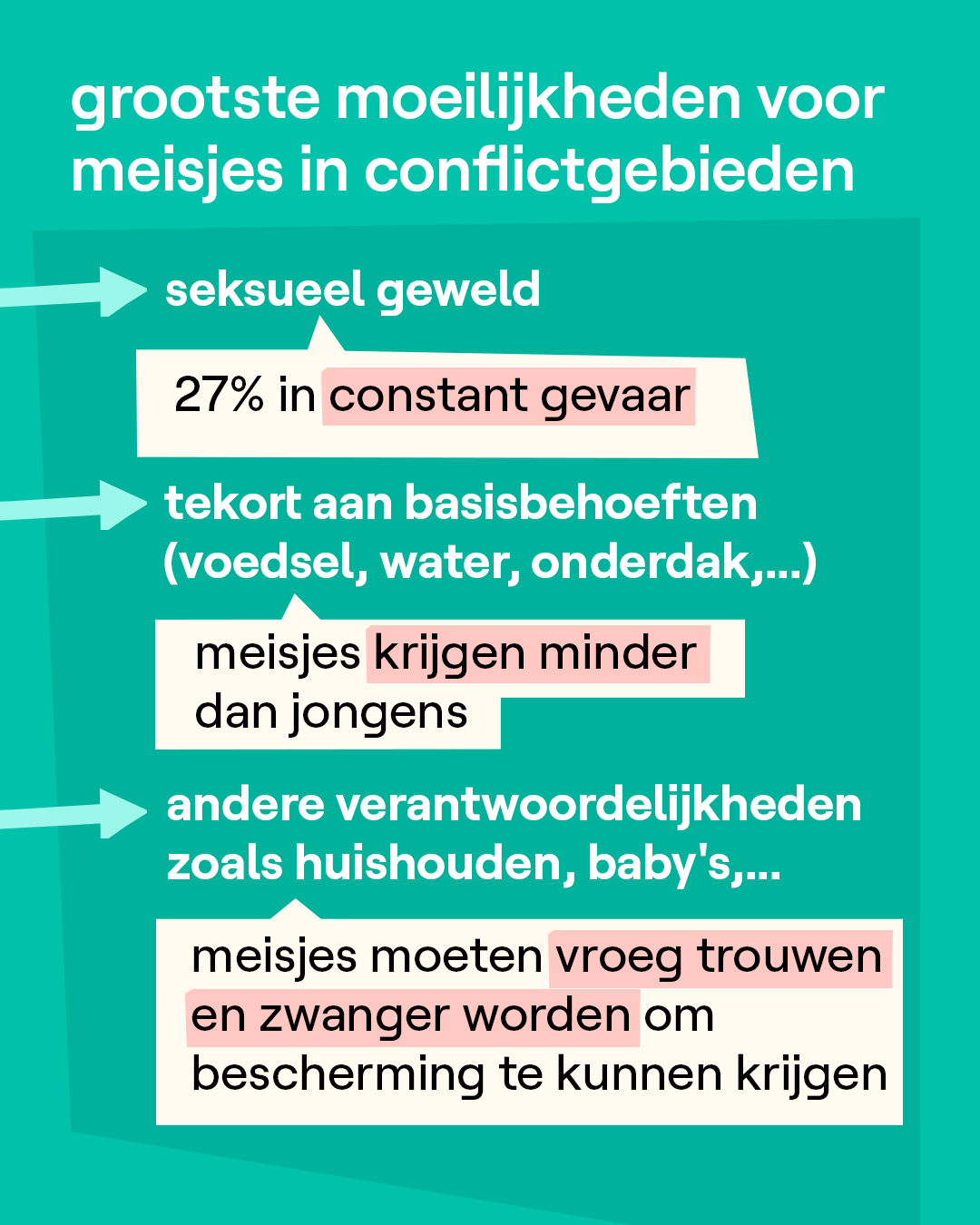 Plan International onderzocht hoe het gaat met jongeren in conflictgebieden. Aan het onderzoek namen 10.000 jongeren deel tussen de 15 en 24 jaar uit tien conflictgebieden, waaronder Libanon en Oekraïne. Ook hier bij ons voelen meisjes zich niet altijd even veilig. Volgens Plan International voelde 91% van Belgische meisjes zich al eens geïntimideerd.