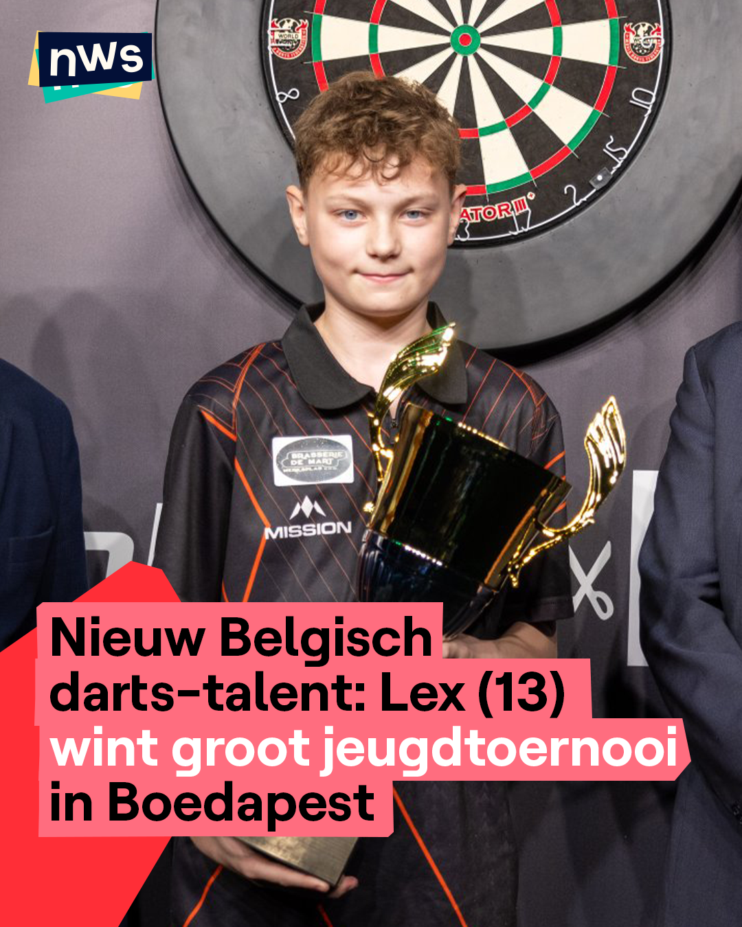 Watch out Dancing Dimi, een nieuw toptalent staat klaar! Lex Paeshuyse (13) uit Rijkevorsel heeft dit weekend de WDF Boys World Masters gewonnen in Boedapest. Da’s een belangrijk dartstoernooi bij de jeugd. Twee jaar geleden won de bekende darter Luke Littler nog het toernooi. Lex begon met darten tijdens corona. Intussen maakte hij al veel indruk tijdens jeugdcompetities. Hij wordt nu zelfs gezien als een van de grootste opkomende talenten in de Belgische dartswereld en mag in november naar het grote WK voor de jeugd. Bij de meisjes plaatste ook de Belgische Jentl Fransen (15) zich voor dat WK. En nog meer darts-nieuws uit ons land: Mike De Decker (28) heeft gisteravond de World Grand Prix gewonnen. Dat is een superprestigieus en uniek toernooi in het darts. Hij won daarvoor van de Britse topdarter en nummer 1 van de wereld Luke Humphries (29).