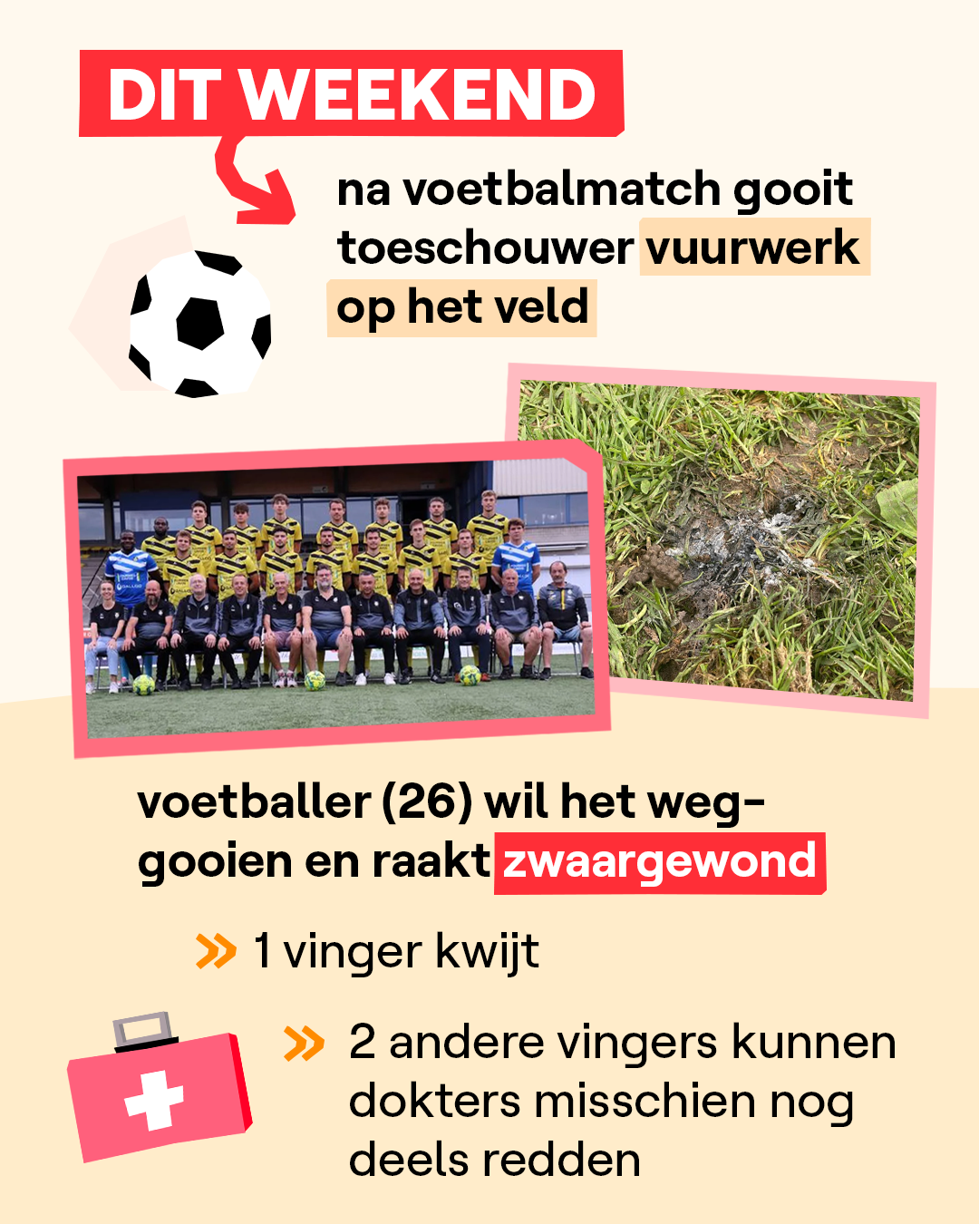 Voetballer uit Menen verliest vinger nadat supporter vuurwerk op het veld gooit