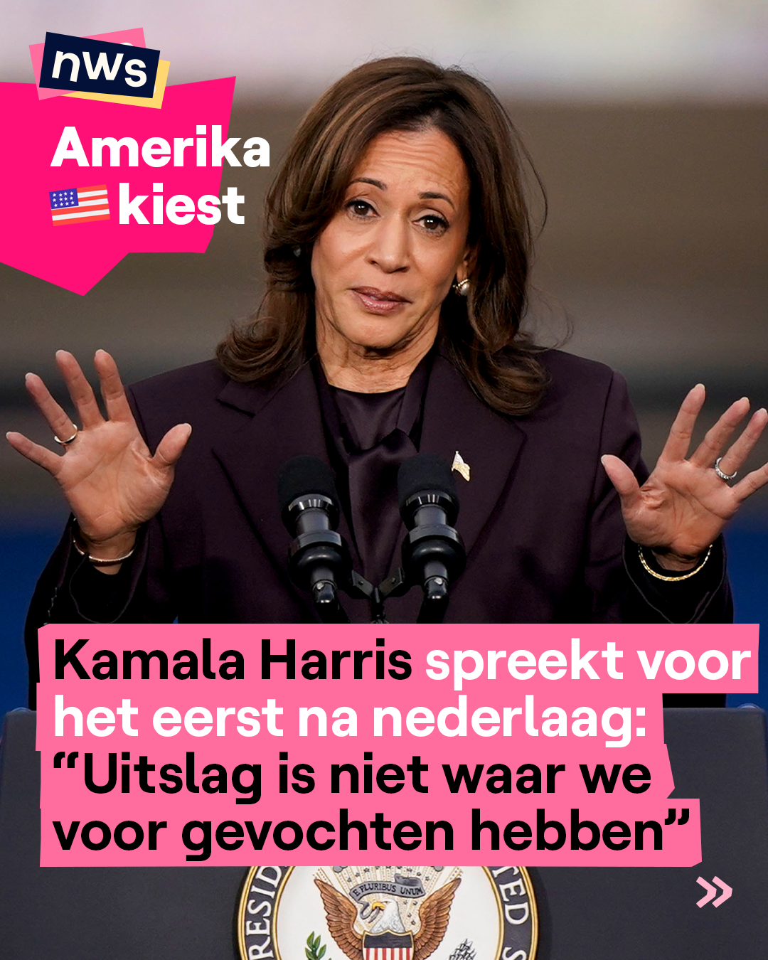 Kamala Harris spreekt voor het eerst na nederlaag: "Uitslag is niet waar we voor gevochten hebben"