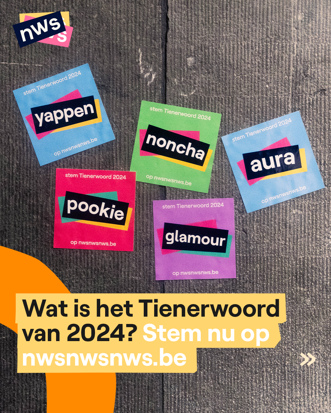 Let's gooo! Glamour, noncha, pookie, yappen of aura: wil jij mee beslissen wat het Tienerwoord van 2024 wordt? Ga dan snel naar nwsnwsnws.be en stem op jouw favoriet. Op maandag 2 december maken we de winnaar bekend.