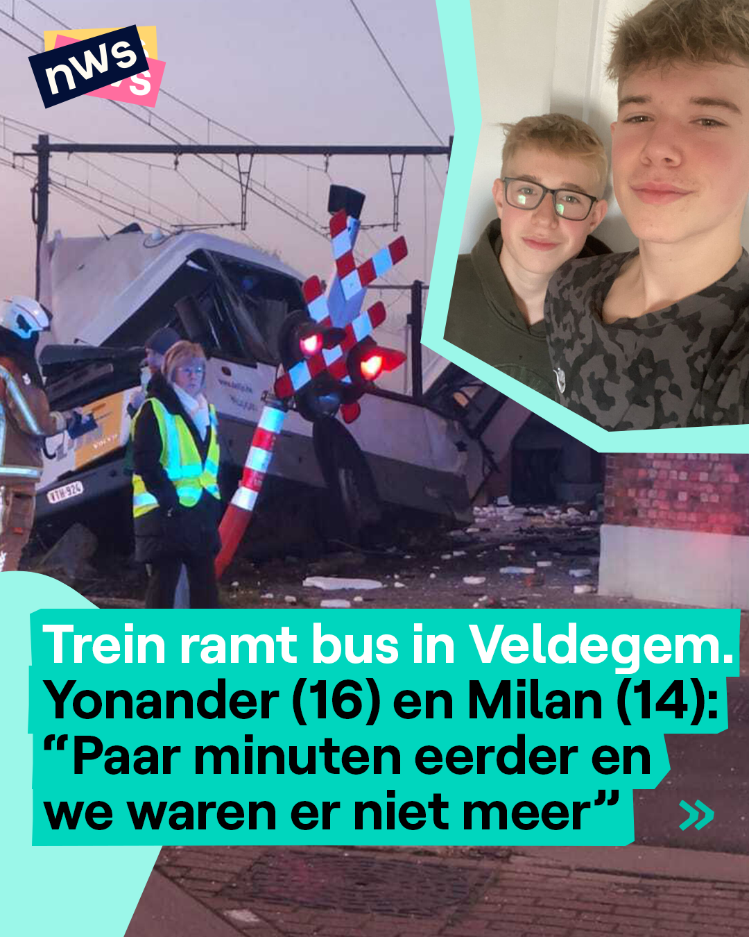 Trein ramt bus in Veldegem. Yonander (16) en Milan (14): "Paar minuten eerder en we waren er niet meer"
