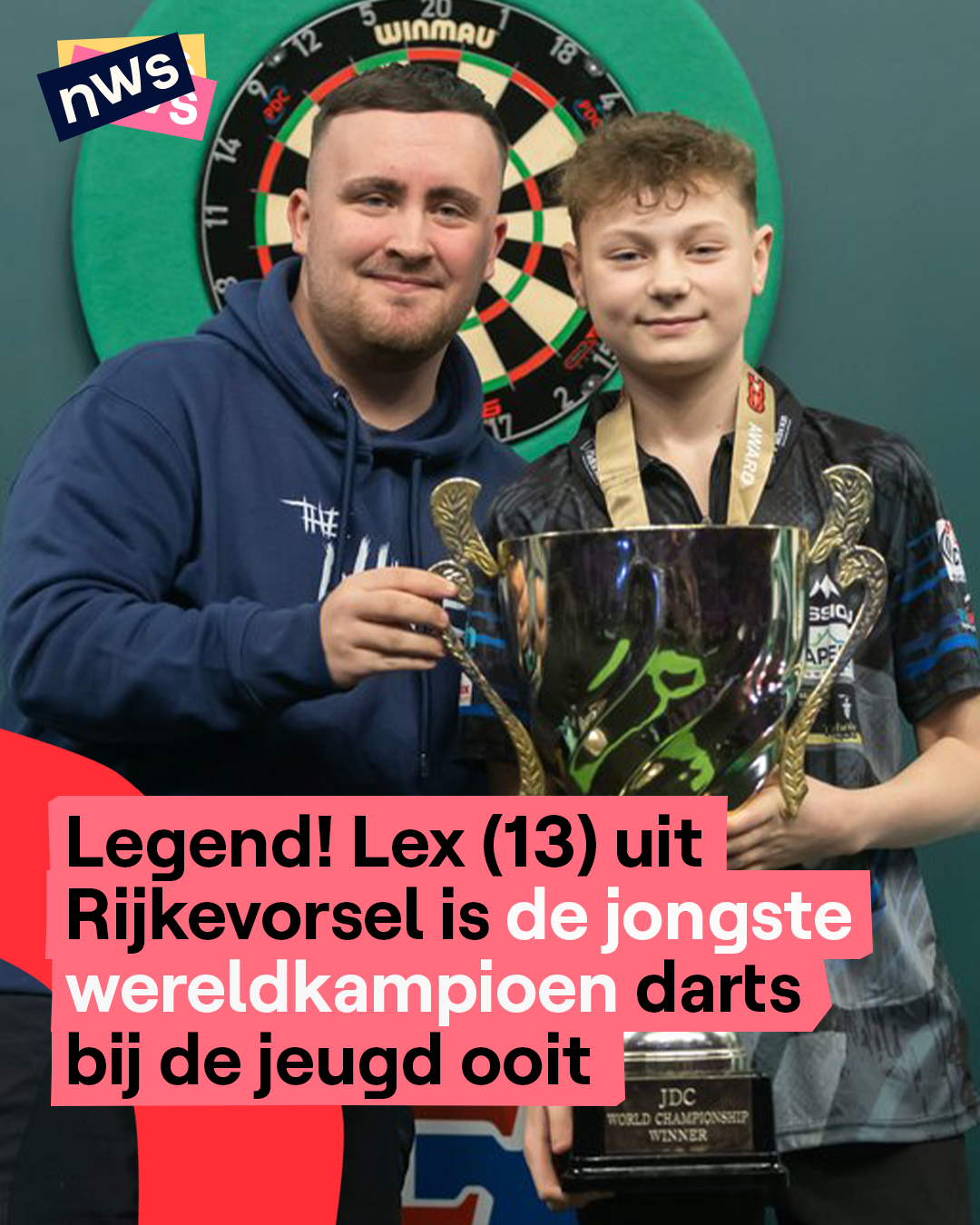De 13-jarige Belg Lex Paeshuyse is wereldkampioen darts! Hij won het WK van de Junior Darts Corporation, hét toernooi voor darters onder de 18 jaar. Wat het extra cool maakt: Lex is niet alleen de jongste winnaar ooit, maar ook de eerste Belg die dit toernooi wint. In de finale versloeg hij de drie jaar oudere profdarter Daniel Stephenson met een grote voorsprong. Na zijn overwinning kreeg Lex felicitaties van Luke Littler, de winnaar van vorig jaar, én van Dancing Dimi, die hem de afgelopen dagen hielp en motiveerde. Lex begon met darten tijdens corona en zet nu met deze wereldtitel een megastap richting een gouden dartscarrière.
