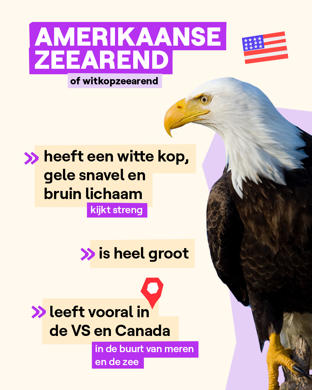 Huidig president van de Verenigde Staten Joe Biden ondertekende gisteren een wet die de witkoparend tot officiële vogel van de VS maakt. Veel Amerikanen wisten niet dat dat nog niet het geval was omdat het dier al jarenlang zo’n belangrijk symbool is. Bij de tekening van een Amerikaanse zeearend zie je ook vaak een olijftak, een pak pijlen, een schild, enkele sterren en de Latijnse tekst “E Pluribus Unum”, wat “uit velen, één” betekent.