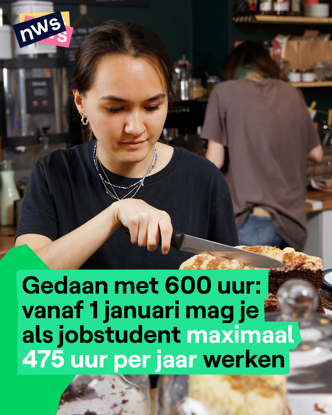 Werk jij een hele zomervakantie in de supermarkt of sta je zondagochtend in een bakkerij? Vanaf 1 januari 2025 mag je als student maximaal 475 uur werken. Da's minder dan de voorbije 2 jaar, want dan was het 600 uur. In ons land mag je vanaf je 16 jaar iets bijverdienen als jobstudent. Soms zelfs al vanaf je 15e. Het voordeel? Je betaalt minder sociale bijdragen dan een gewone werknemer. Iedereen die werkt betaalt aan de overheid sociale bijdragen. Da's een deel van je loon dat gebruikt wordt om bijvoorbeeld pensioenen te betalen. 't Is wel belangrijk dat je je houdt aan die 475 uur. Als je meer werkt, moet je meer sociale bijdragen betalen en zal je minder geld overhouden. Op de website van Student At Work kan je op elke moment checken hoeveel uren je nog mag werken.