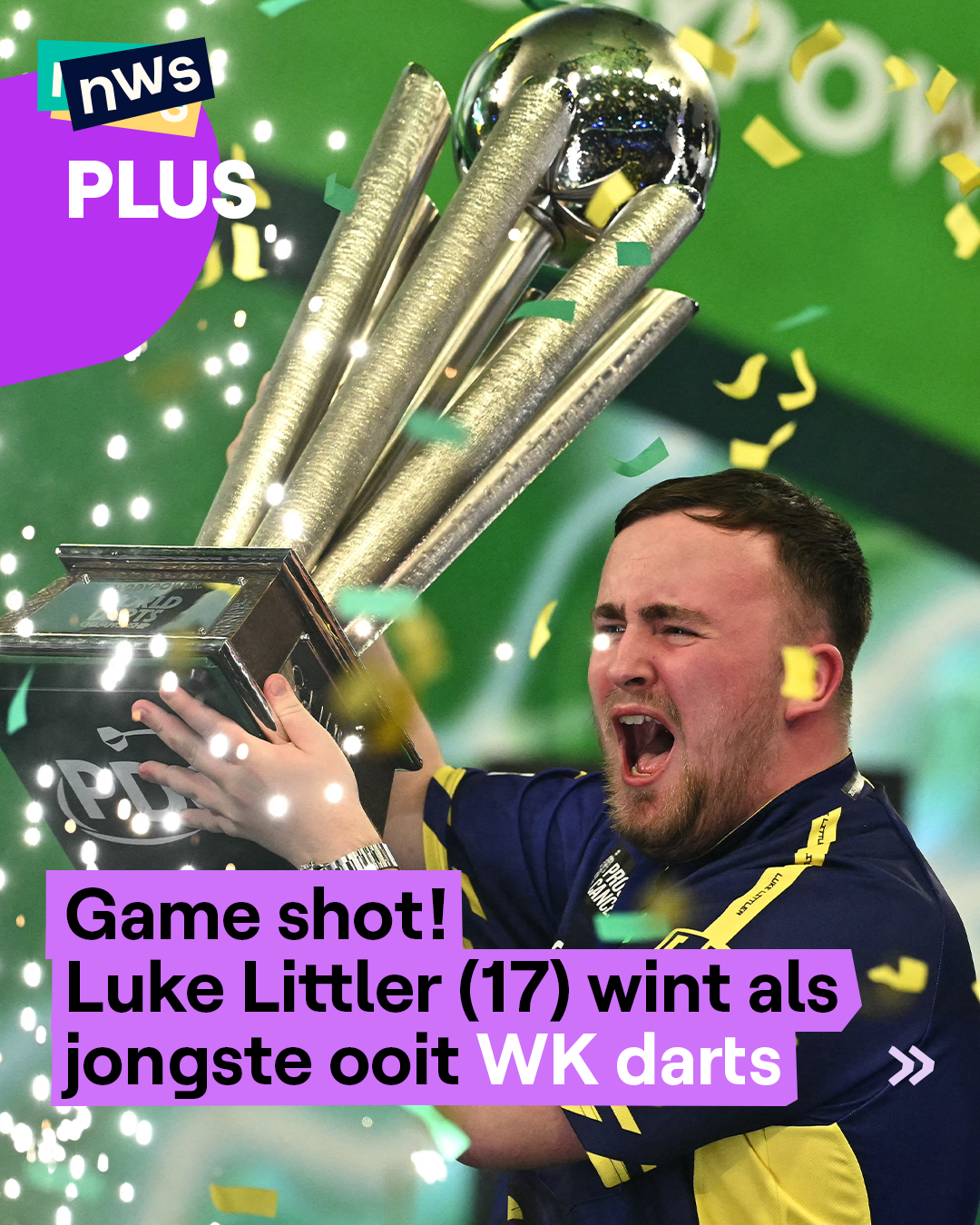 Zot! Luke Littler (17) is de jongste wereldkampioen darts ooit. Hij won gisterenavond van Nederlander Michael van Gerwen met 7-3. De tranen sprongen in zijn ogen. "Ik kan het nauwelijks geloven. Iedereen droomt van deze trofee. Ik had vooraf gezegd dat ik sterk moest openen en dat is wat ik deed", zegt Luke achteraf. Naast zijn trofee en de wereldtitel, krijgt Luke ook een cheque 576.600 euro mee naar huis. Hij verzamelde in zijn carrière al 1,35 miljoen euro. Luke staat daardoor op de tweede plaats in de wereldranking. Op nummer 1 staat Engelsman Luke Humphries.