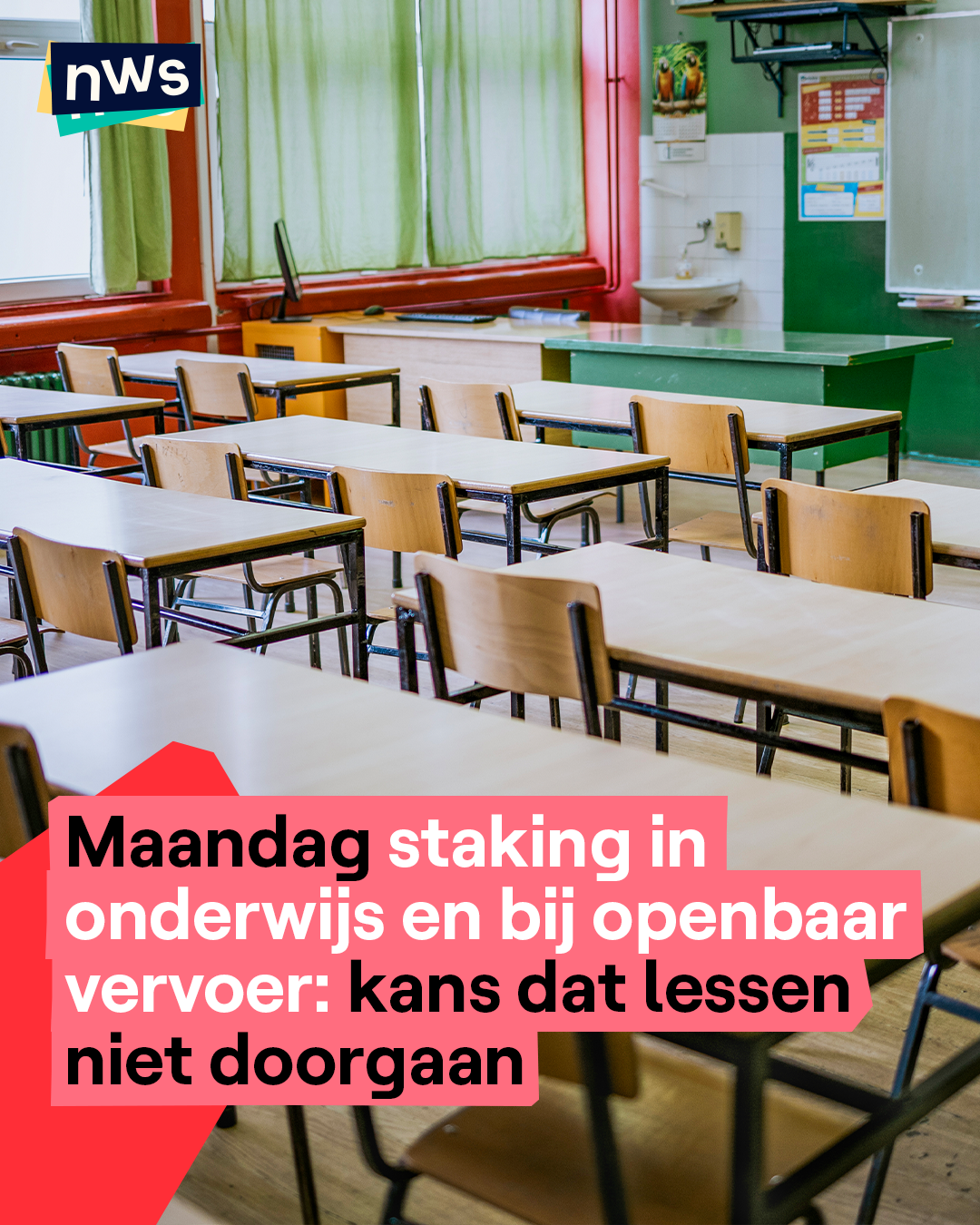 Maandag staking in onderwijs en openbaar vervoer: kans dat lessen niet doorgaan