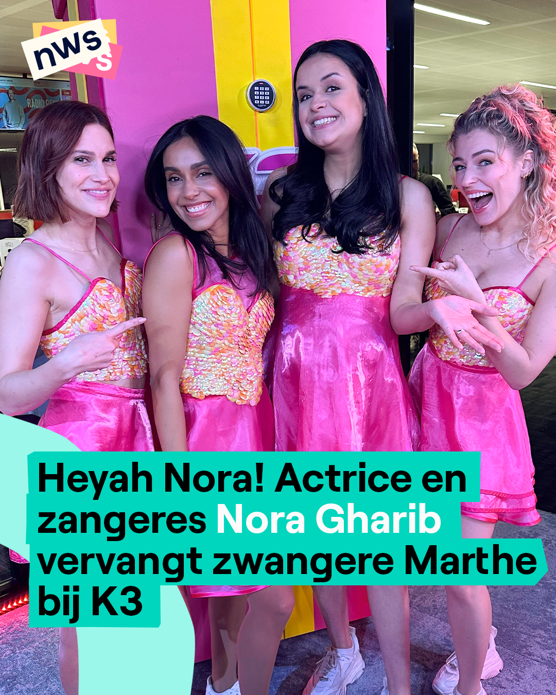 Oya lélé, wat een verrassing! Nora Gharib vervangt voor een tijdje Marthe bij K3. Dat kondigde de groep vanochtend aan op de radiozender Qmusic. Marthe is zwanger en zal binnenkort niet meer kunnen optreden. Daarom zocht K3 een vervanger. Nora Gharib is een Belgische zangeres, actrice, presentatrice en influencer. Je kent haar misschien wel van de film 'Patser'. Tien jaar geleden deed Nora ook mee aan 'K3 zoekt K3'. Dat was een wedstrijd waarin de originele K3'tjes op zoek gingen naar hun vervangers. Nora haalde de finale toen net niet, maar 10 jaar later wint ze dus toch nog een klein beetje.