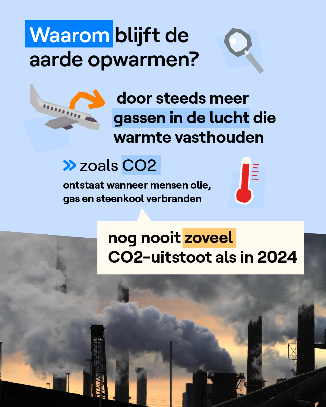 De CO2-uitstoot was nog nooit zo hoog als in 2024. Daar zit ook El Niño voor iets tussen. Da's een weerfenomeen waardoor de aarde opwarmt. Daardoor is er meer droogte en ontstaan onder andere ook meer bosbranden